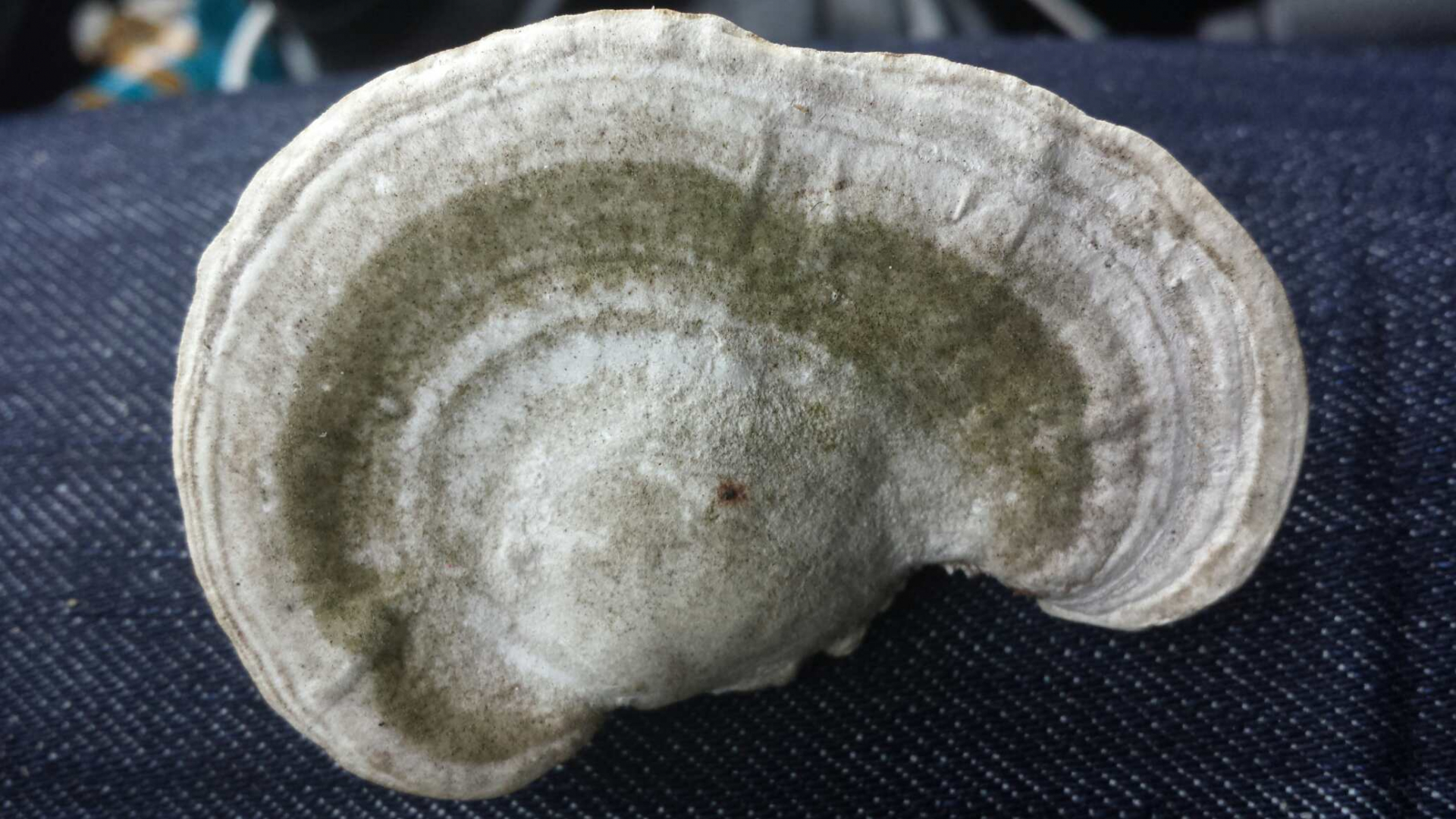 Oft an Buche mit dem typischen oft veralgtem Buckel und den langgestreckten Poren.Der gezeigte recht feste Pilz wuchs an abgesägter Hasel. Auf dem Pilz befindet sich ringförmig und etwas dunkler eine flaumartige Struktur. Könnte es sich deswegen und wg. den vergleichsweise runderen Poren um die Striegelige Tramete handeln. Mir fehlt hier die Erfahrung und der Vergleichsmaßstab.