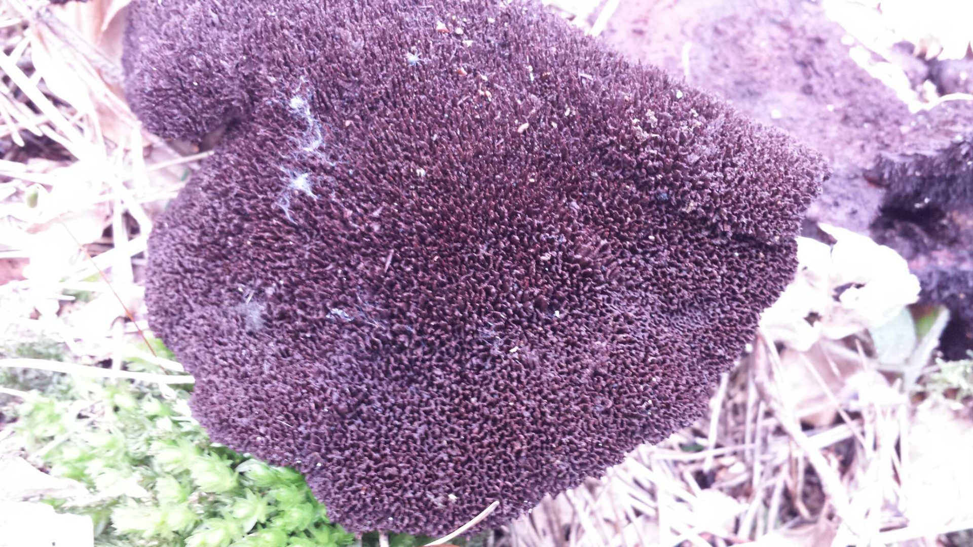 Das Gebilde mit recht fester Konsistenz wuchs auf einer abgestorbenen zerfallenen und stark vermoosen Buche und war ca. 7cm groß.