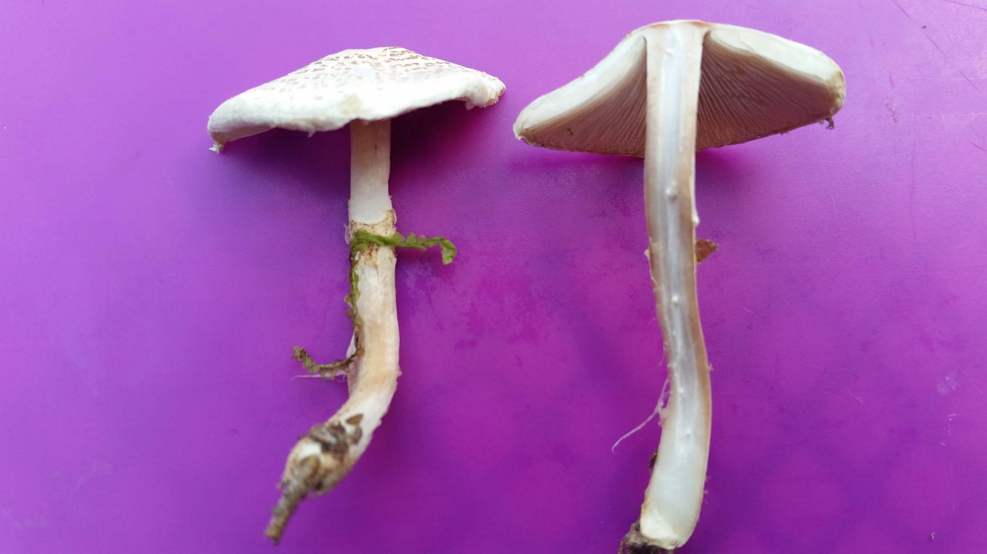 der 2. Pilz hat einen dunklen Rand am Hut, ich hoffe man kanns erkennen...