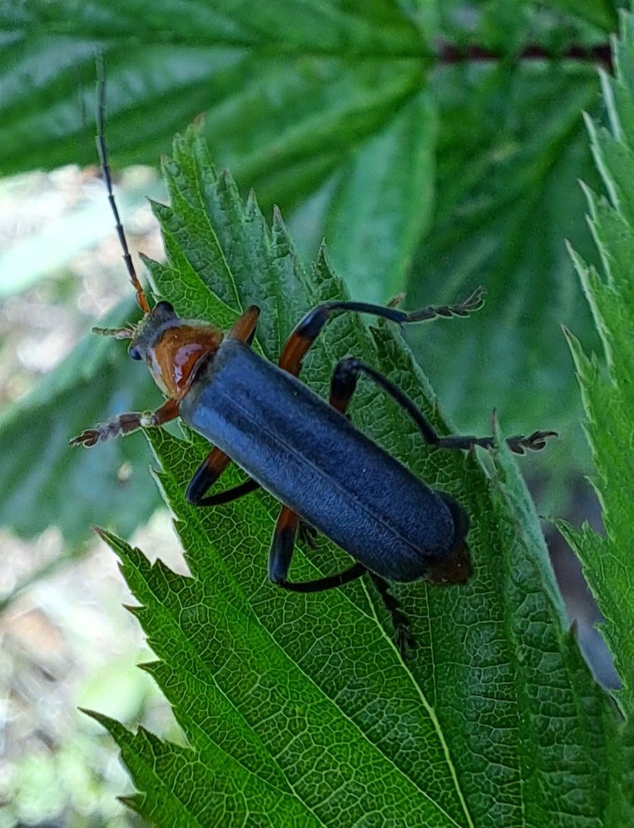 hier noch ein veränderlicher : Variabler Weichkäfer (Cantharis livida). Er hat wohl schon einen seiner Fühler eingebüst. Sicher ein ganz harter Bursche unter den Weichkäfern ![]()