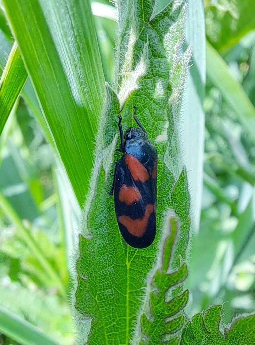 eine Blutzikade Cercopis vulnerata posierte auch recht hübsch. Die trinkt nur Pflanzensaft statt Blut, also keine Angst!