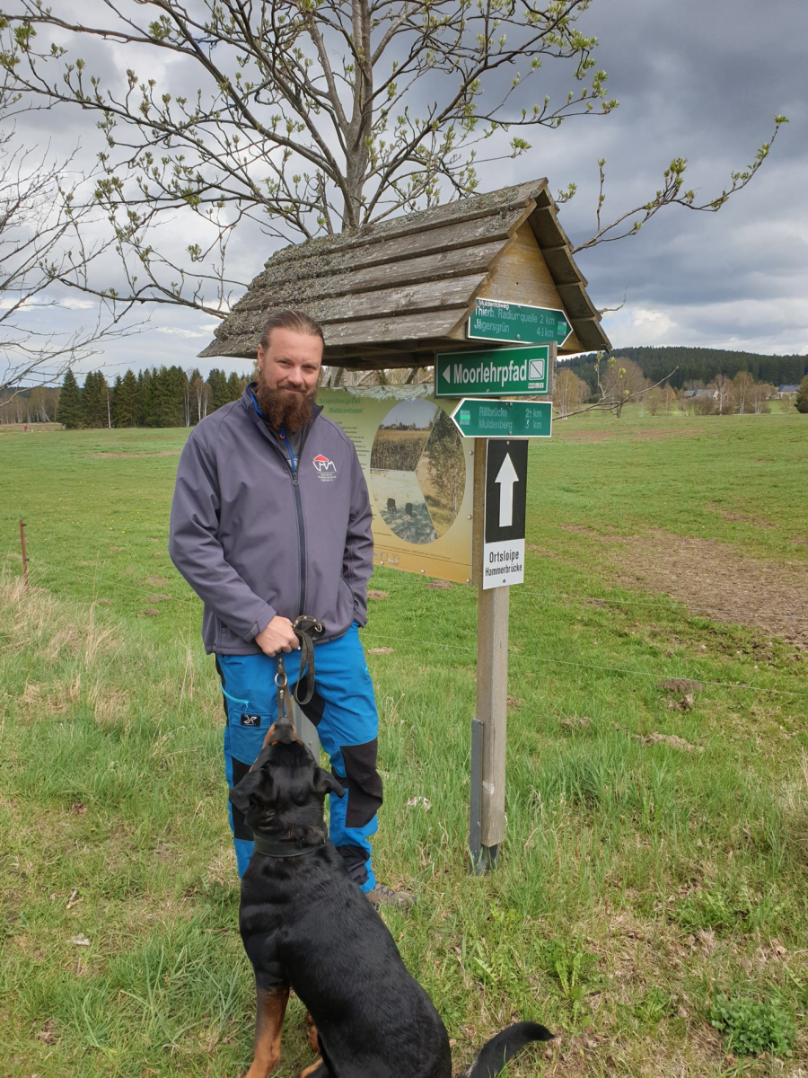 2. Herrchen und Hündi am Moorlehrpfad - der Weg ist schön beschildert und führt einmal durchs ganze Moor,