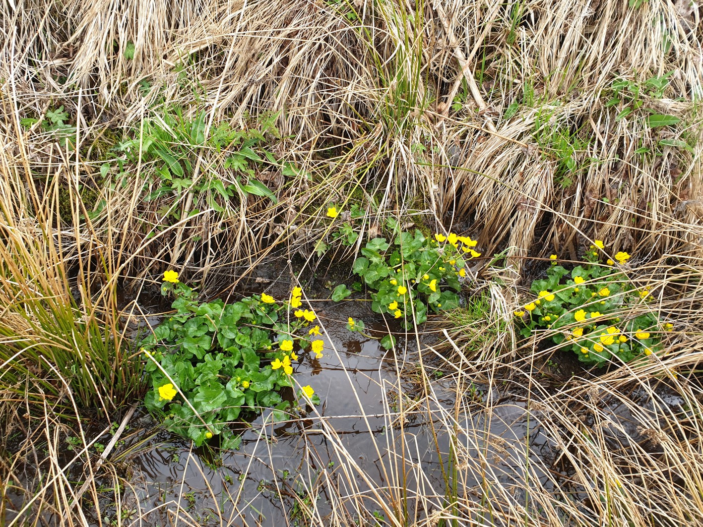 überall am Wegrand blühen die Sumpfdotterblumen (Caltha palustris) in allerschönstem Gelb !