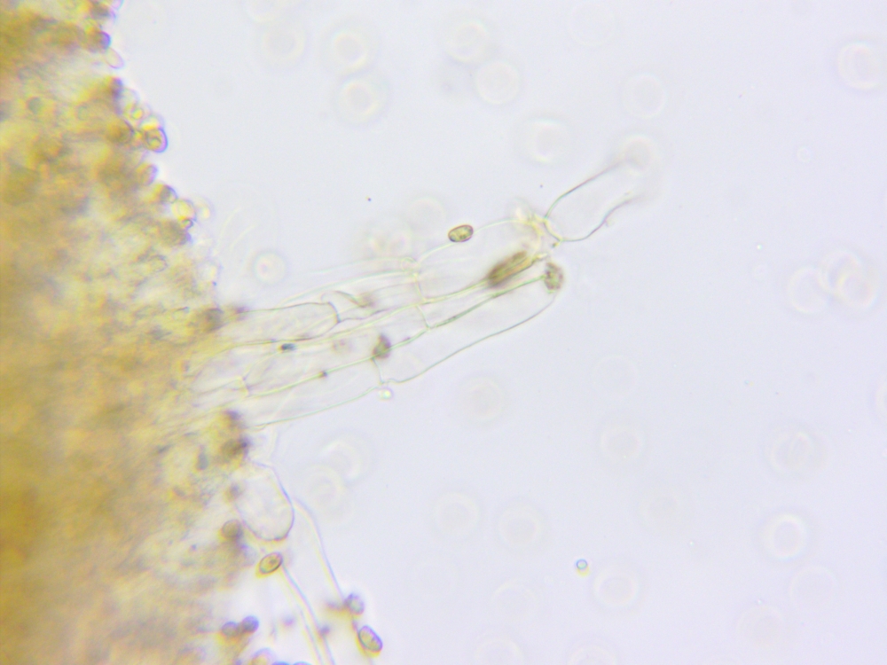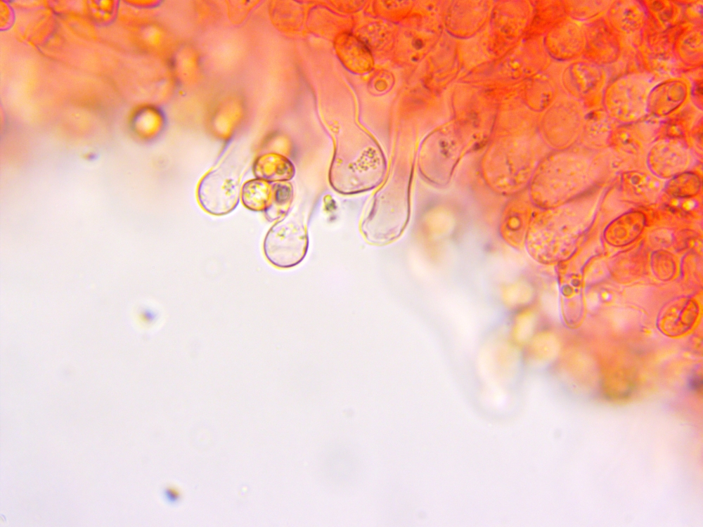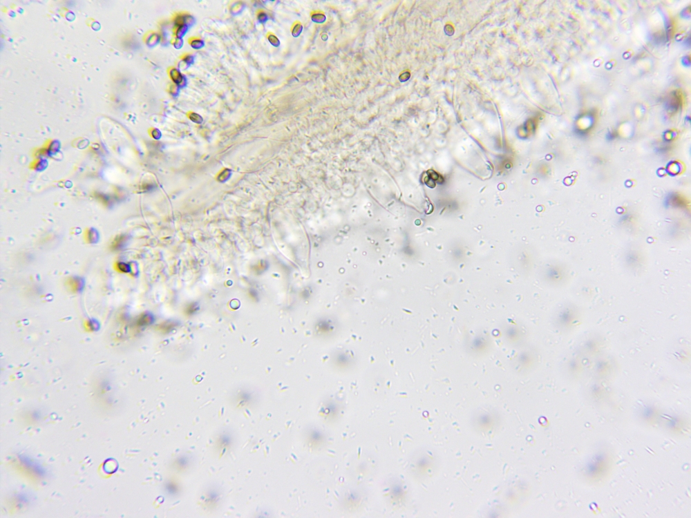 2.Keine Cheilozystiden, nur Pleuros, teils dickwandig, apikal mit kurzem fingerartigem Auswuchs