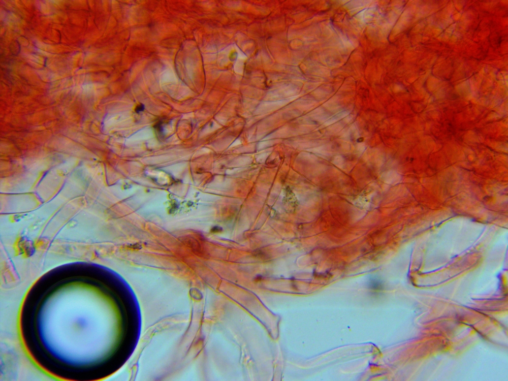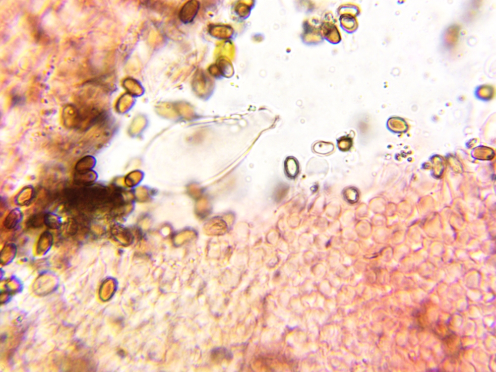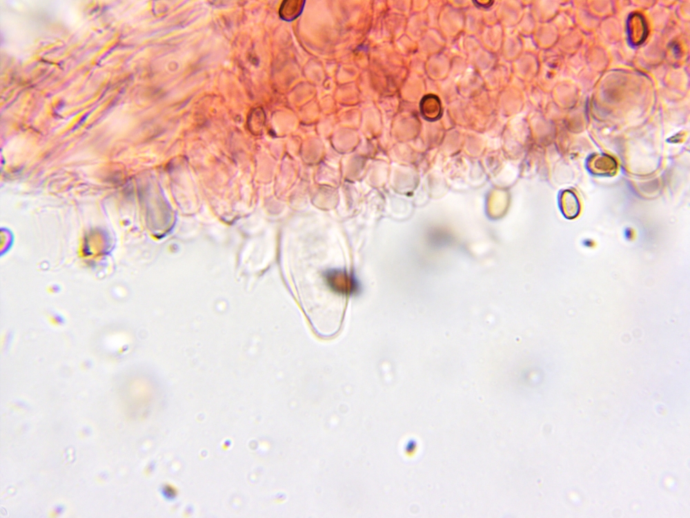 Wir sind komplett Ratlos, sowohl der Gröger als auch die GPBW schlüsseln ins Leere, Alles was irgendwie passt müsste deutlich größere Sporen oder andere Zystiden haben.