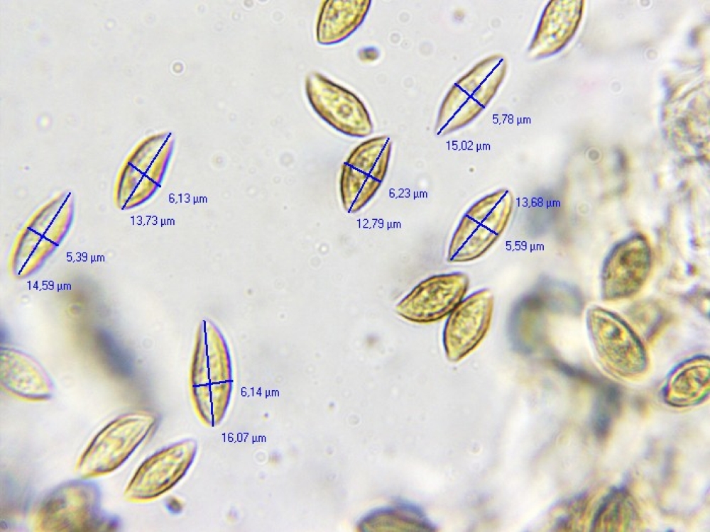 Allerdings hat unser Fund für beide Arten deutlich zu kleinen Sporen.