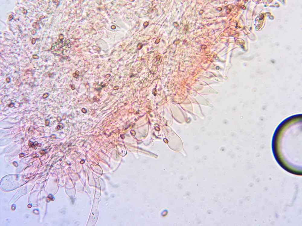 BTW.: Karl ist der Meinung das es sich bei meinem Pilzlein oben eben doch um G.pumila handelt. Diese Kaulozystiden findet er wohl regelmäßig im Bereich der Stielspitze ( ich habe da tatsächlich mein Präparat aus dem oberen Stielviertel gemacht), auch die Form der Cheilos ist wohl sehr charakteristisch. Sporenform und Maße passen (laut Funga Nordica) wohl auch in den Rahmen.