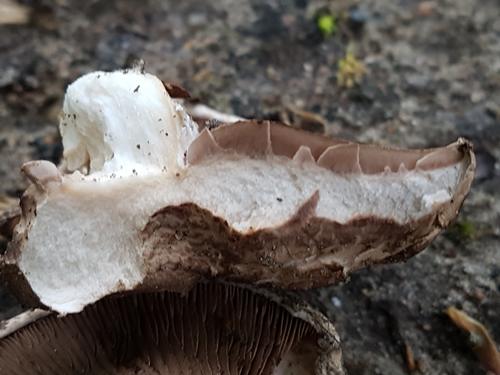 4. so und nun besuchen wir nochmal den kleinen Seltsamling und untersuchen ihn mal genauer. Jemand warf den (nicht rötenenden)Salzwiesenegerling ins Rennen, aber er stinkt nicht. er roch ganz schwach nach Zuchtchampignon, hatte fast keinen stiel, keinen ring und war sehr fest ( eingetrocknet)
