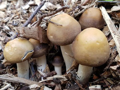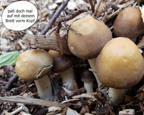 1.Bei dem hier mußte ich an den goldmistpilz denken, aber es kann auch was anderes sein, Lamellen war cremeweiß