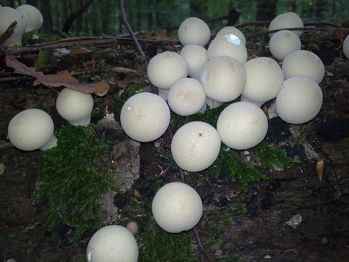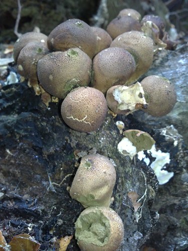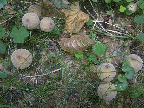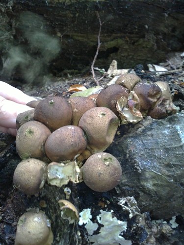 11. auf einem Baumstumpf sah ich diese Winzlinge, was ist das? ist das überhaupt ein Stäubling? sie waren ca 2 cm hoch oder werden das noch Hutpilze, so Hallimaschartig?