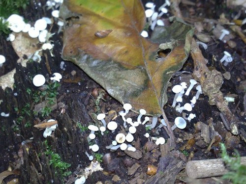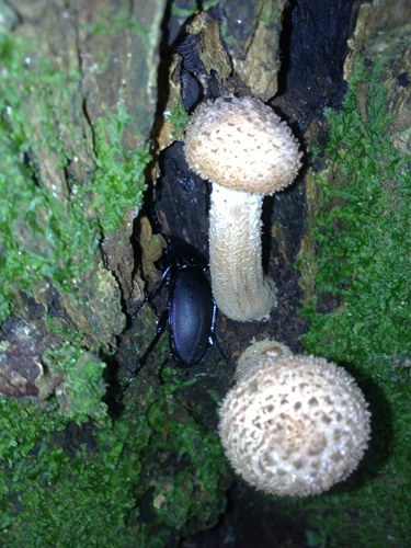 13. Ein Laufkäfer sucht Schutz neben einem Hallimasch