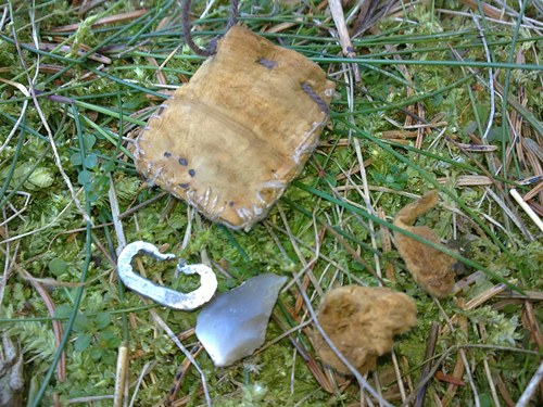Und hier mal Jeans Feuerzeug, bestehend aus dem Feuereisen , flintstein und Zunder ( die Tasche dazu ist auch daraus