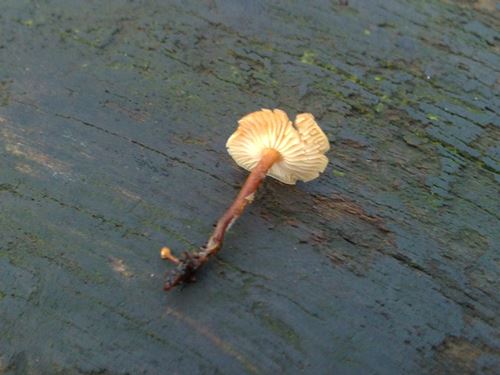 6. Unbekannte Winzlinge auch an dem Buchenstamm, Hut durchmesser etwa 1,5 cm