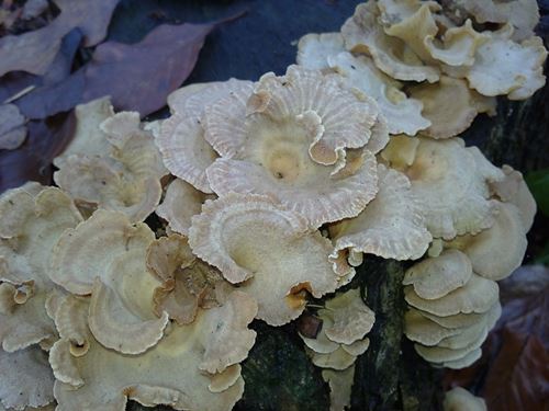 1. als erstes begegnete mir der , den ich für eine gestriegelte Tramete hielt,mit eingewachsenem Blatt,aber ich hab leider da nicht näher geguckt, evt war es auch was ganz anderes