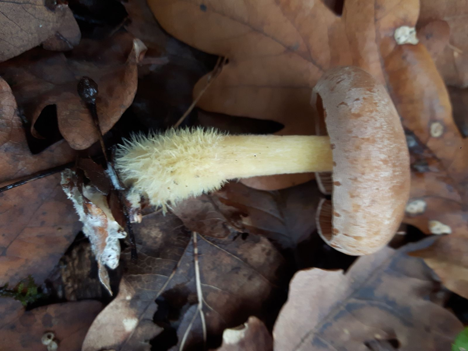 diese Pilze habe ich unter Eiben und Laubbäumen entdeckt. Aufgefallen ist mir die schöne Hutform und der gelbliche Stiel, der an der Basis behaart ist.