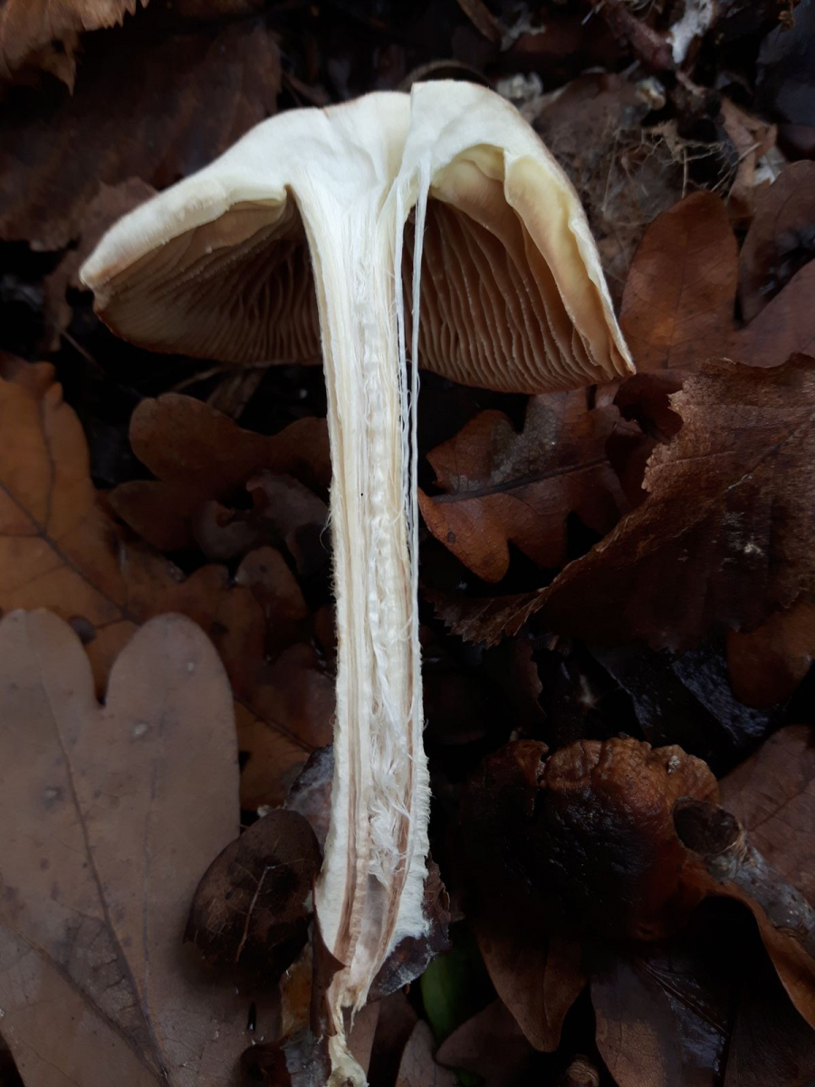 Das Sporenpulver ist weiß, der Stiel hohl, die Lamellen frei oder doch angewachsen.