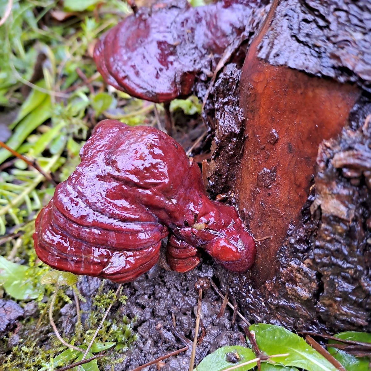 Vielleicht ein Kupferroter Lackporling, Ganoderma pfeifferi?