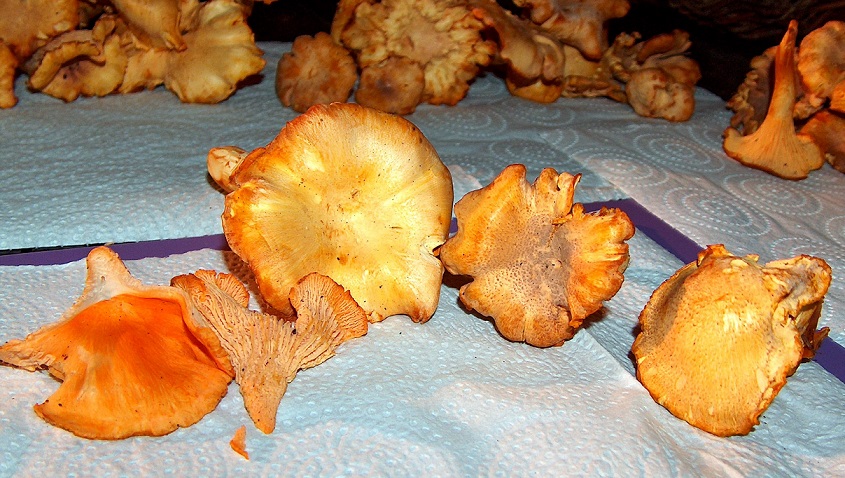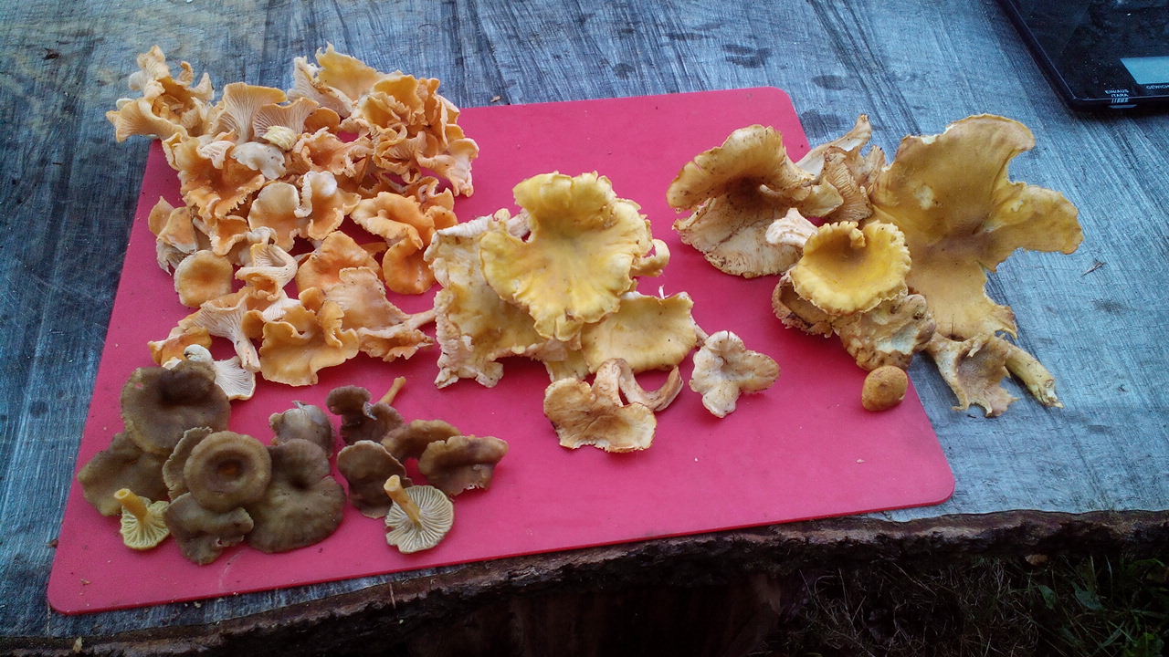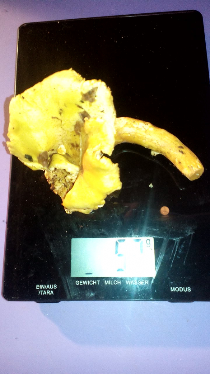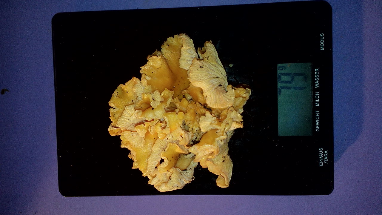 Die Pilzgröße, gebe ich Dir Recht, ist normalerweise deutlich kleiner, leichter und die Färbung ist dunkler im orangenen Spektrum. Zum Fundort ist wichtig zu wissen, dass die friesiis die von mir gesammelt wurden, in einer nur mir zugängigen Stelle liegt und ich alle stehen lasse die noch nicht voll ausgereift sind. Der friesii ist vergleichsweise langsam am wachsen und abgebildetes Exemplar wurde insgesamt über 19 Tage in einem 2 tägigen Rhythmus beim wachsen beobachtet. Die in diesem Zeitraum vorherrschenden Bedingungen des Habitats, waren mit Ausnahme von 2 Tagen - an denen war es zu trocken - nahezu perfekt. Buchenwald, engstehender ca. 3m hoher Nachwuchs, Ost Lage, Neigung ca. 8%, Laubbedeckung Vorjahr, eher sauer, keine direkte Sonne, aber genügend Licht, Wärme und Feuchtigkeit ohne Standnässe. Eine weitere Beobachtung war das langsame ausblassen der Hutfärbung in den letzten 9 Tagen, bei deutlich zunehmender Größe und schwindendem Tageslichtanteil. Was Dich sicherlich zu der Aussage bei der Färbung brachte. Insgesamt konnte ich dort nach und nach in den letzten 6 Wochen 12kg friesii ernten. Bei denen ein Anteil von 17% der absoluten Zahl gesammelter Pilze, ein Gewicht von größer 30g gewogen wurde, zum Zeitpunkt eines volladulten Stadiums und dem beginnenden Niedergangs. Das Gewicht ist vor allem auch deshalb so hoch, da die Tage eine sehr hohe speicherbare Feuchtigkeit gegeben war. So kam es, dass die Durchschnittliche Feuchtigkeit von ca. 90%, bis auf 94% angestiegen ist. Unterster Wert in den letzten 6 Wochen war bei einem friesii 84%. Was bei dem abgebildeten Exemplar immerhin einen Unterschied von ca. 13g, ausgehend der 79g ausmacht. Im selben Habitat konnte ich auch Rekordgrößen der cibarien und amethystheen sammeln. Bei cibarius waren es 189g, 19,6cm hoch und einen Hutdurchmesser von 14,8cm siehe ( http://www.pilzforum.eu/board/showthread.php?tid=26441 ) und bei einem Cantharellus Amethysteus sogar 240g und einem Durchmesser von fast 24cm. Diese Größen fand ich in der Literatur bislang als obere Grenze nie beschrieben. Die Verwachsungen wird es wohl wie Du sagst bei allen Arten geben, ich habe Sie allerdings bislang nur bei den friesiis gefunden. Teilweise so stark, dass sie in ihrem Aussehen stark an ein blumenkohlartiges Gewächs erinnert haben und nahezu ausschließlich aus Verwachsungen bestanden. Als letzte Anmerkung, die ersten Tage an denen ich diesen Pilz beobachtet habe (mit anderen zusammen) war er rund und hatte eine deutlich orangefarbene trockensamtige Hutmitte, erst nach 5 Tagen begann er die Verwachsungen zu bilden, leider kann ich keinen Grund dafür benennen.