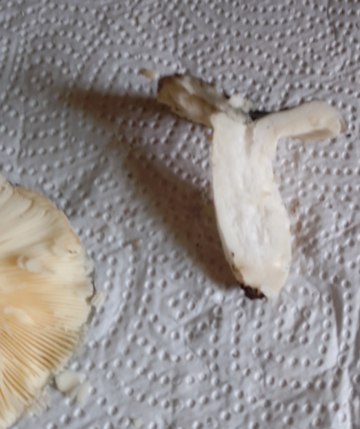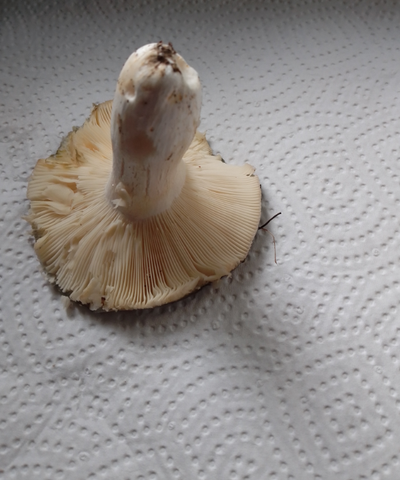 Ich meine dass die Lamellen quasi exakt die gleiche Farbe hatten wie der Stiel (weiß/schmutzig weiß)