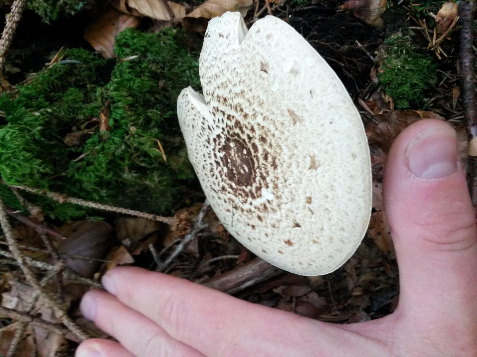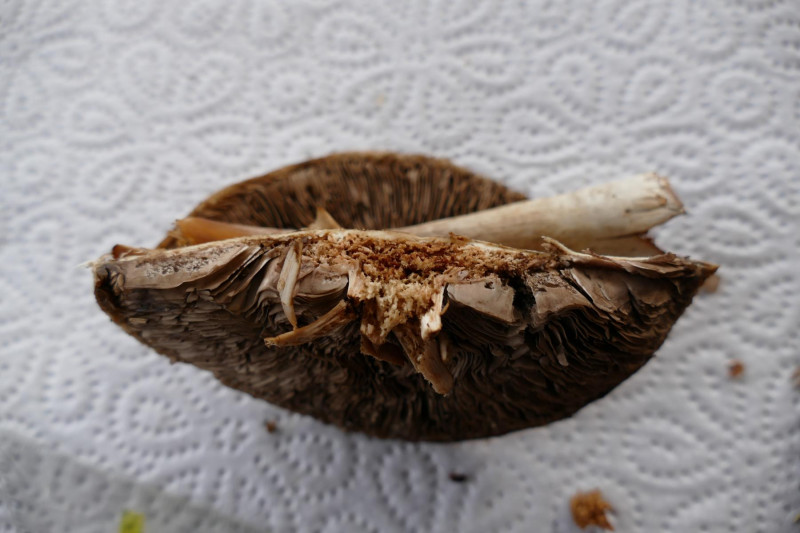 Ok, danke trotzdem. Mein Kollege rief mich im Wald zu sich: "Schau mal Schirmpilze". Das hat mich wohl direkt festgesetzt. Hab auch vor Ort geschaut, ob man irgendeine Farbe oder Farbänderung am Stiel erkennt aber leider ohne Erfolg. Die Stielbasis war leider komplett weg. Geruch fand ich aber nicht schlimm oder karbolartig. Gerade nochmal an dem inzwischen vollständig zerfallenen Exemplar gerochen - immer noch angenehm pilzartig (die Frau stimmt zu).