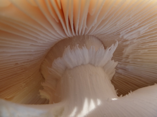 ihr haltet einen alten Mann ganz schön auf Trapp. Spaß beiseite, hier nun der Längsschnitt des Stiels. Den Hut habe ich auf eine Glascheibe gelegt. Da ich ein Laie bin, eine Frage vorab, wie lange dauert das Aussporen? Vergammelt der Pilz nicht, wenn er so lange liegt?