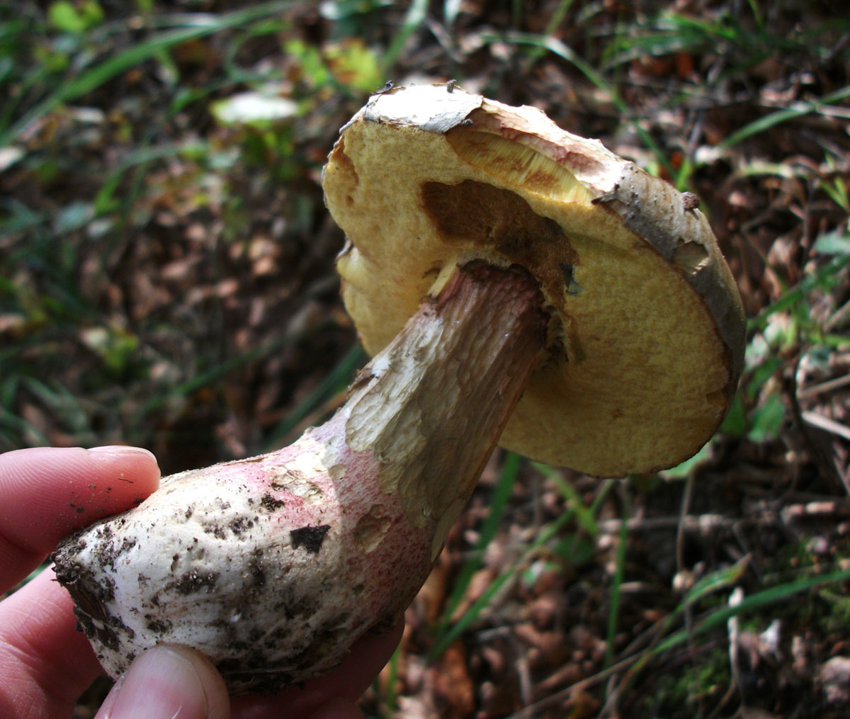 Maya1.) Bin mir nicht sicher ob es sich um den Satanspilz, Schönfussröhrling oder den spätrötenden Hexenröhrling handelt..Oder nichts davon? Die Poren sind ja wie man sieht strahlend gelb und die Huthaus grau/beige. Beim anschneiden wurde er nach einigen Sekunden blau, roch angenehm und war nicht bitter.