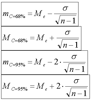 Für Min und Max müssen wir logischer Weise nur den arithmetischen Mittelwert ±Ïƒ (für C = 68%) bzw. ±2σ (für C = 95%) rechnen.