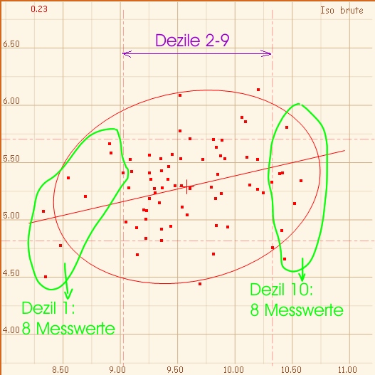 Machen wir das beispielsweise für 74 Messwerte für das 10%-Dezil:
