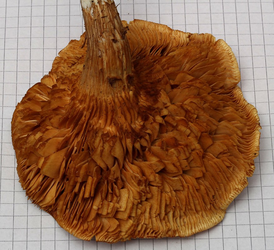 Lamellen: orange, sehr hoch, Zwischenlamellen, Lamellen sind eingerissen