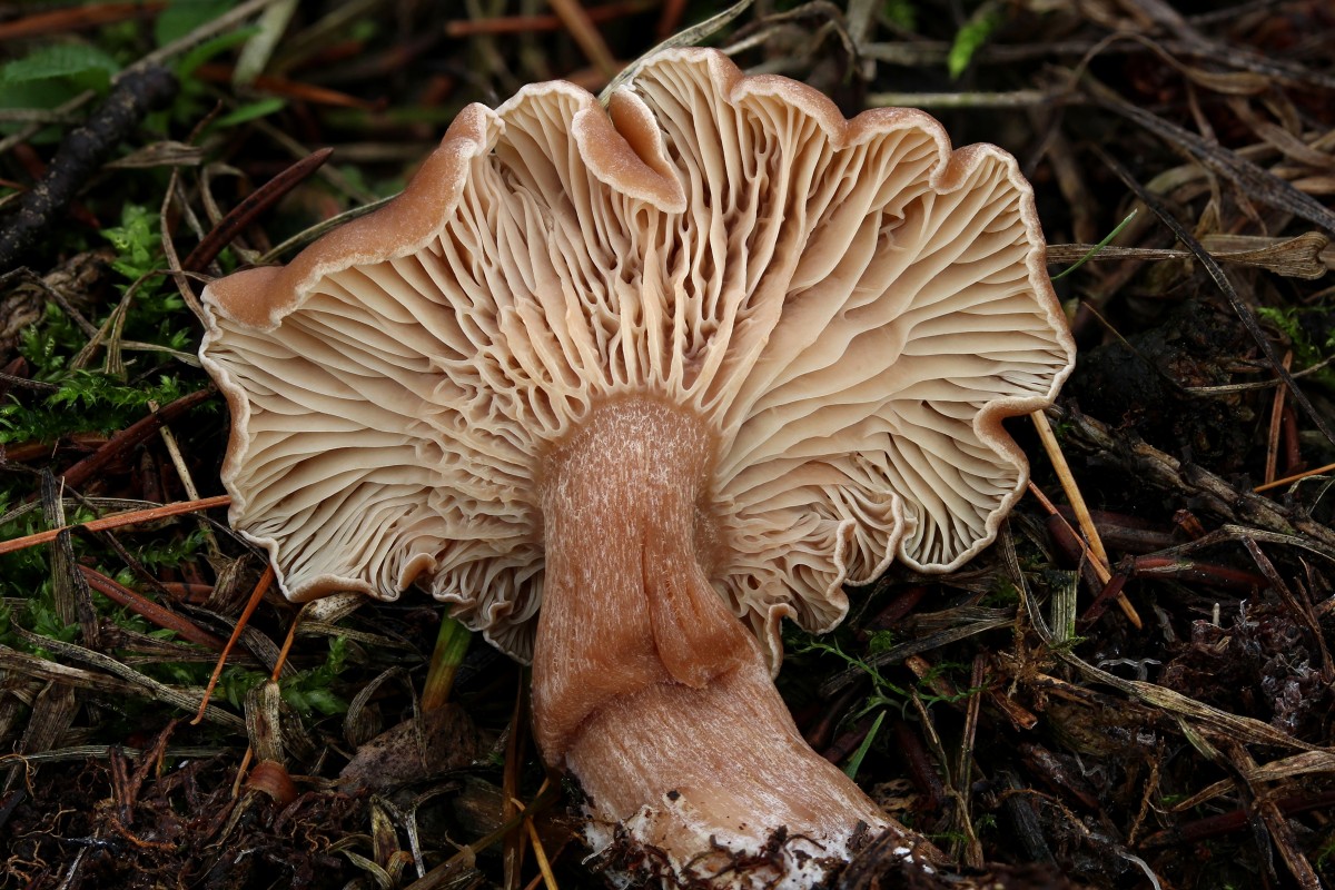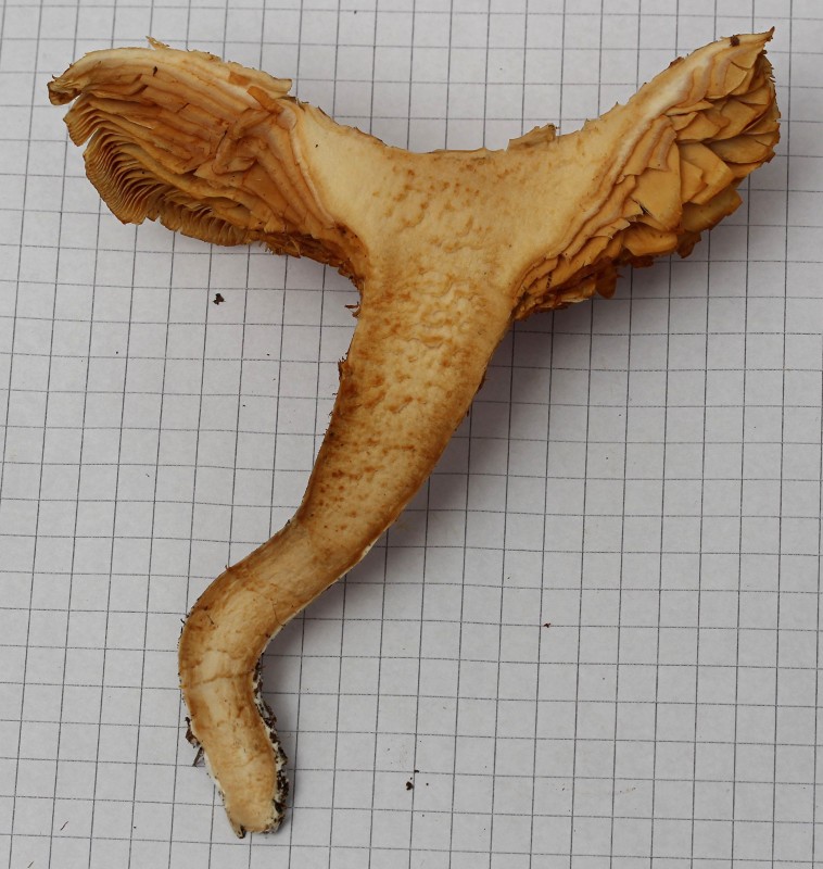Lamellen: creme, mit Zwischenlamellen, mit wenig Y-Gabeln am Stiel, mit angedeuteten Queradern