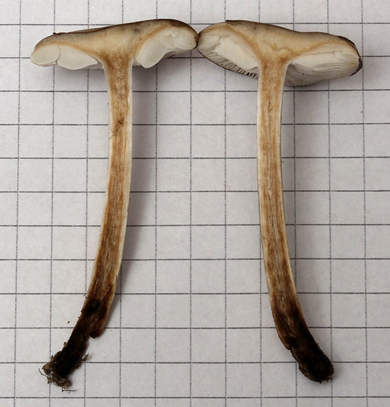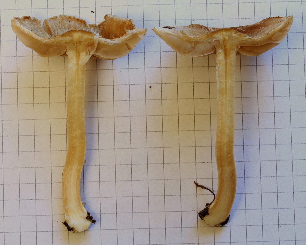 Stiel: elfenbeinfarben, längsfaserig, voll (eindeutig nicht hohl)