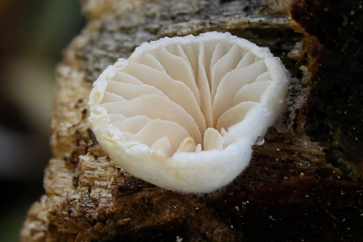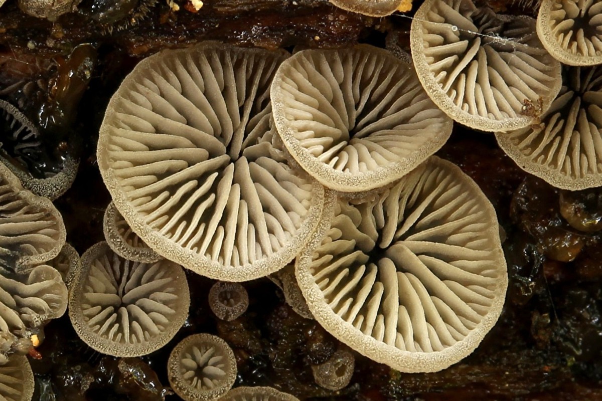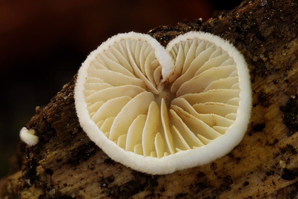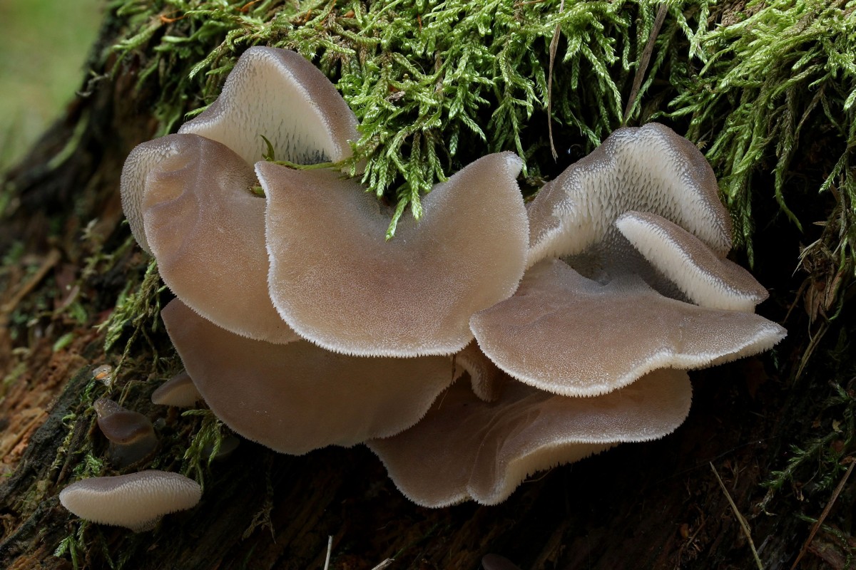 Der Flaumige Zwergseitling (Resupinatus applicatus):