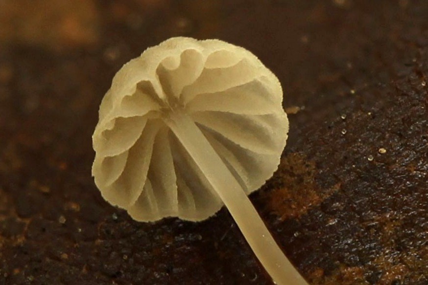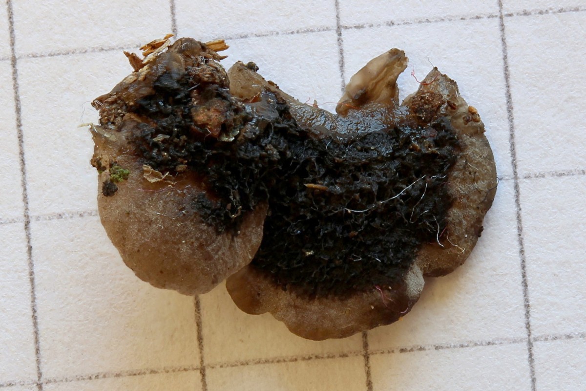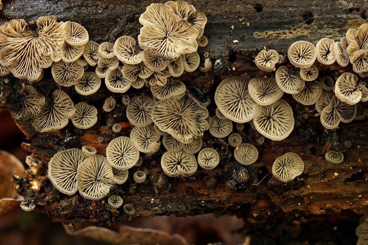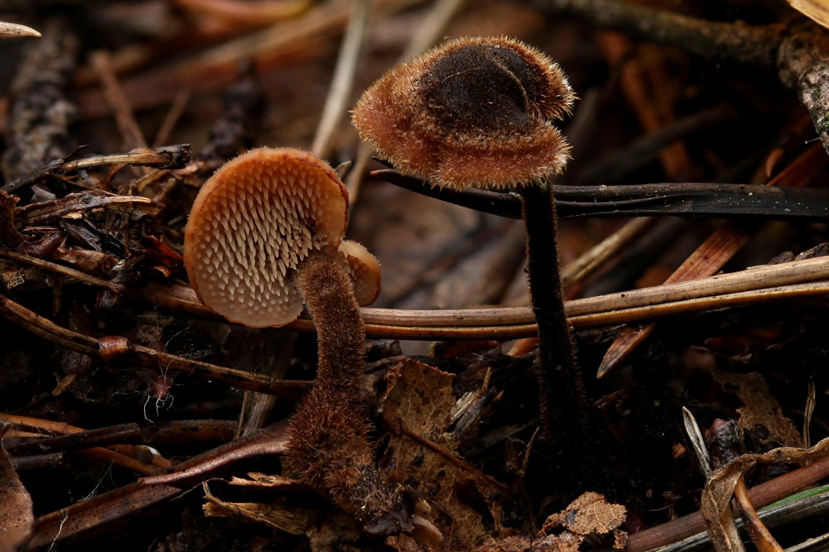 Der Flaumige Zwergseitling (Resupinatus applicatus):