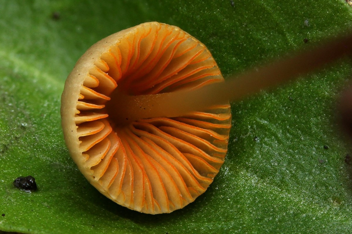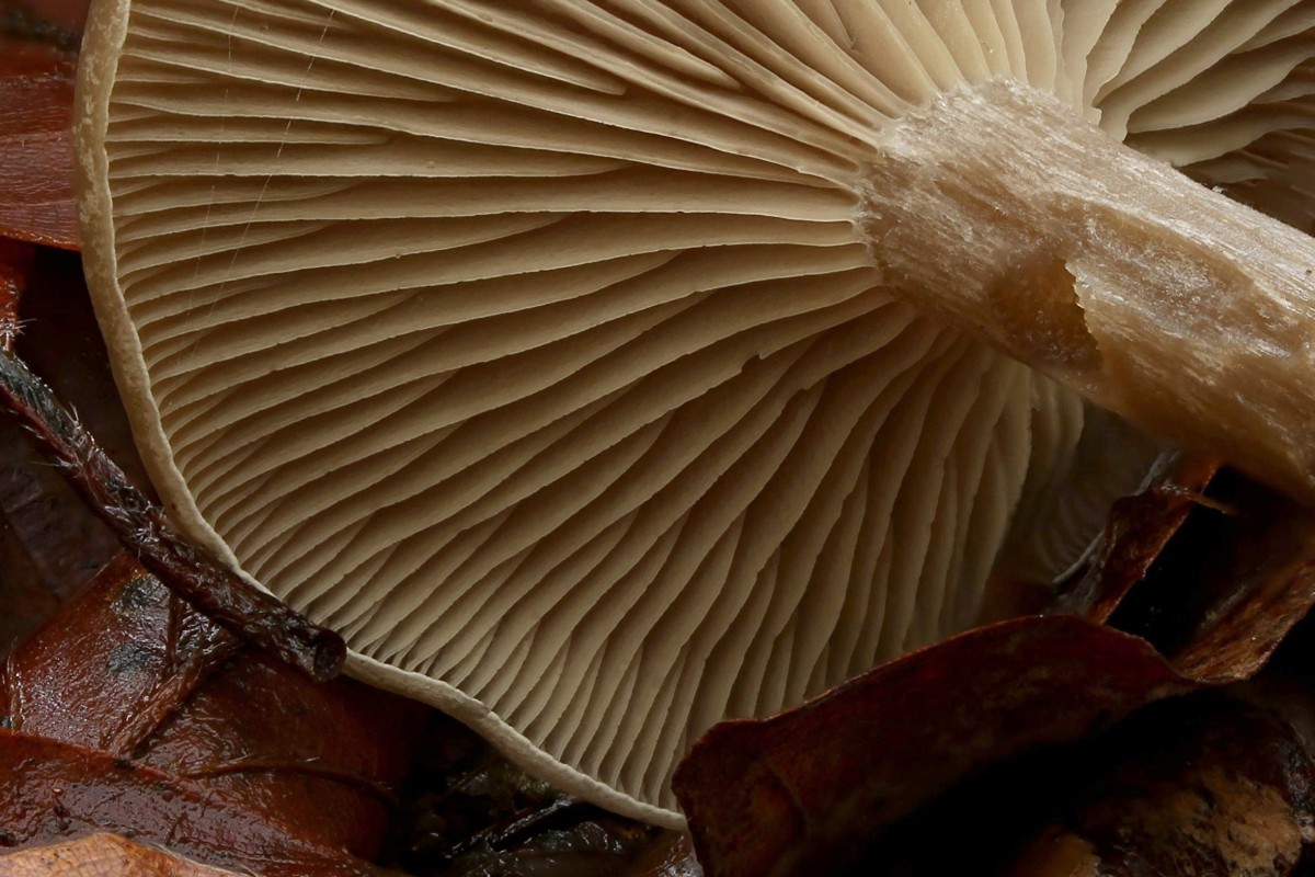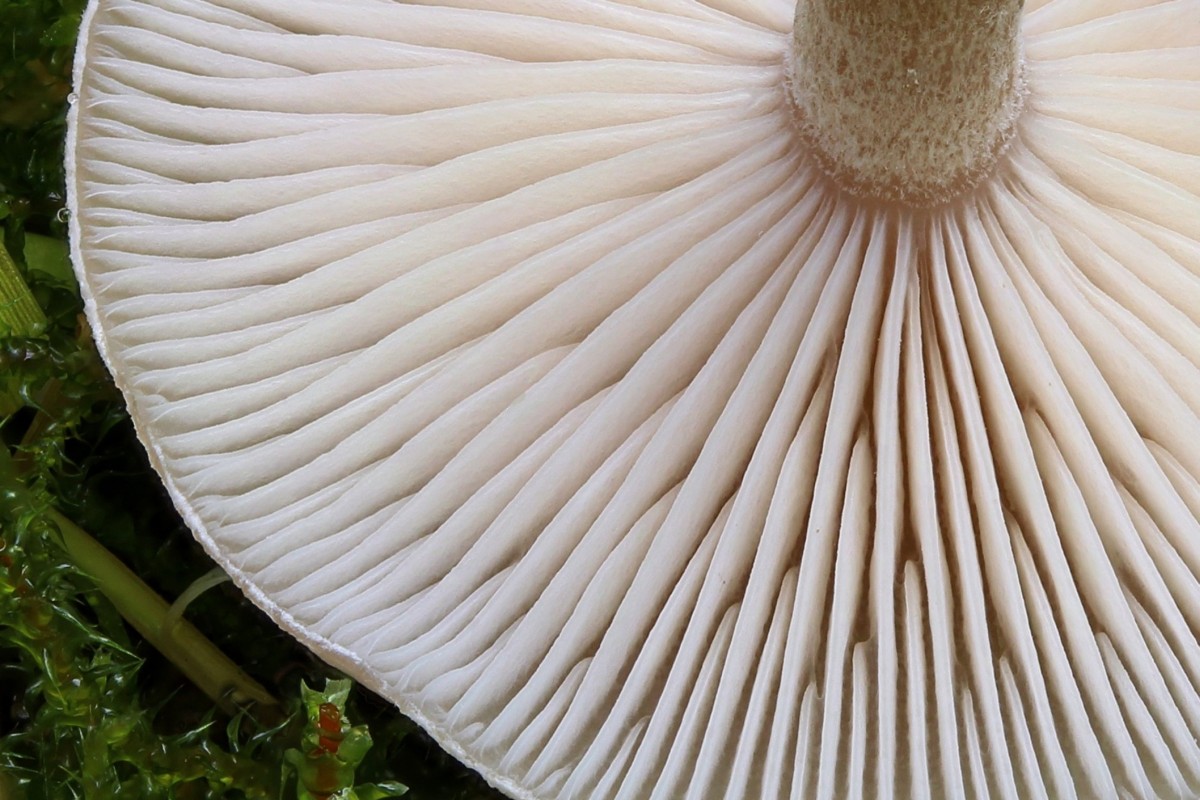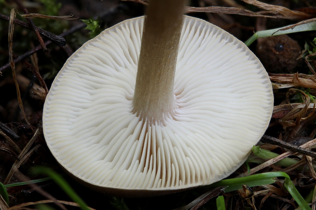 Huthaut: grünlich grau, Huthaut besteht aus einer gummiartigen Schicht, Lamellen durchscheinend