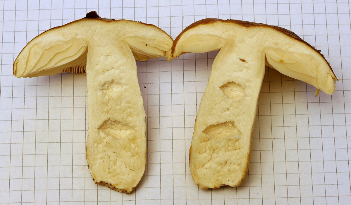 Hier seht ihr die Seidigen Ritterlinge (Tricholoma columbetta) geschnitten: