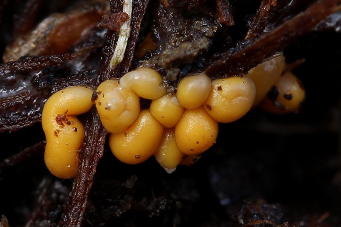 [font="Arial"]Der erste Schleimpilz heute: Auf einer Wurzel - wahrscheinlich Buche