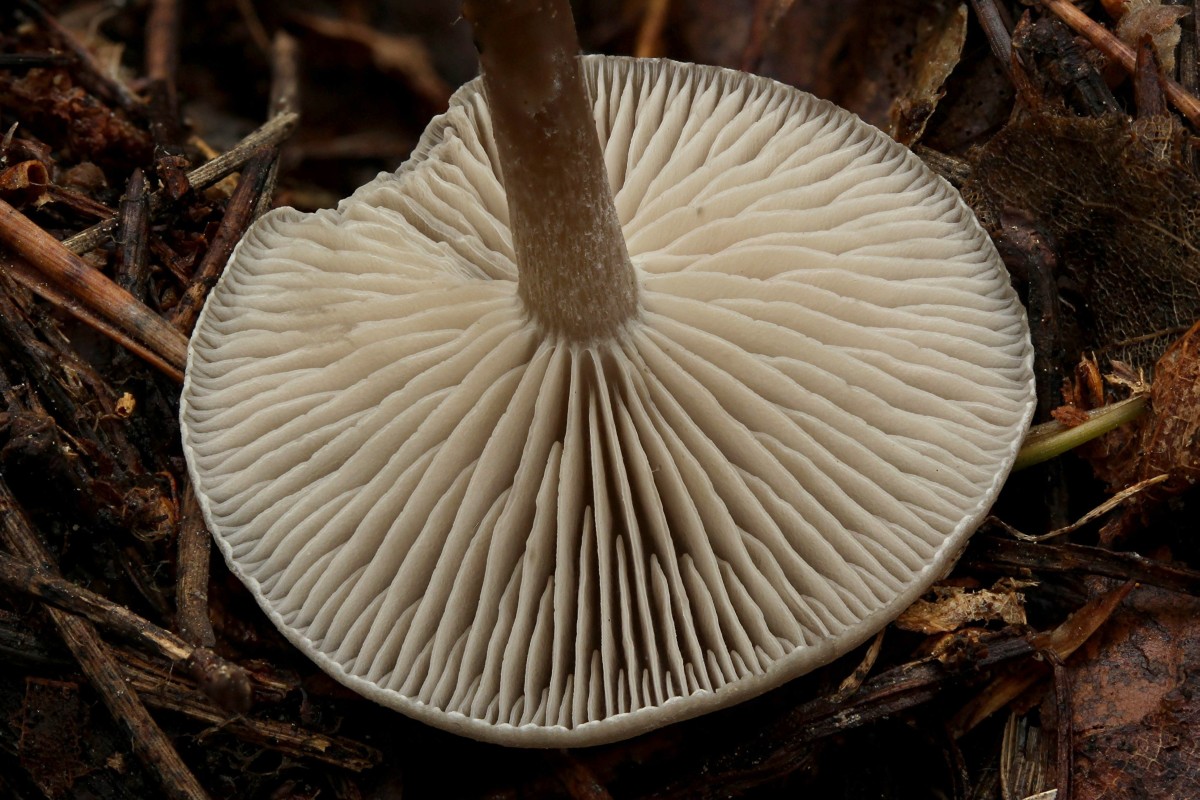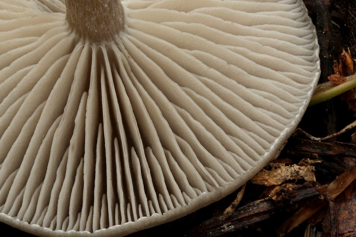 Lamellen: grau, mit Zwischenlamellen, Verästelungen am Grund