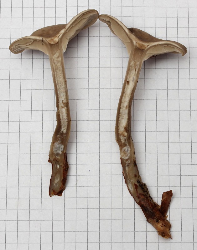 Stiel: oben weiß, nach unten graubraun werdend, oben bereift, längsfaserig, keine Ring (das was aussieht wie ein Ring ist eine Beschädigung)