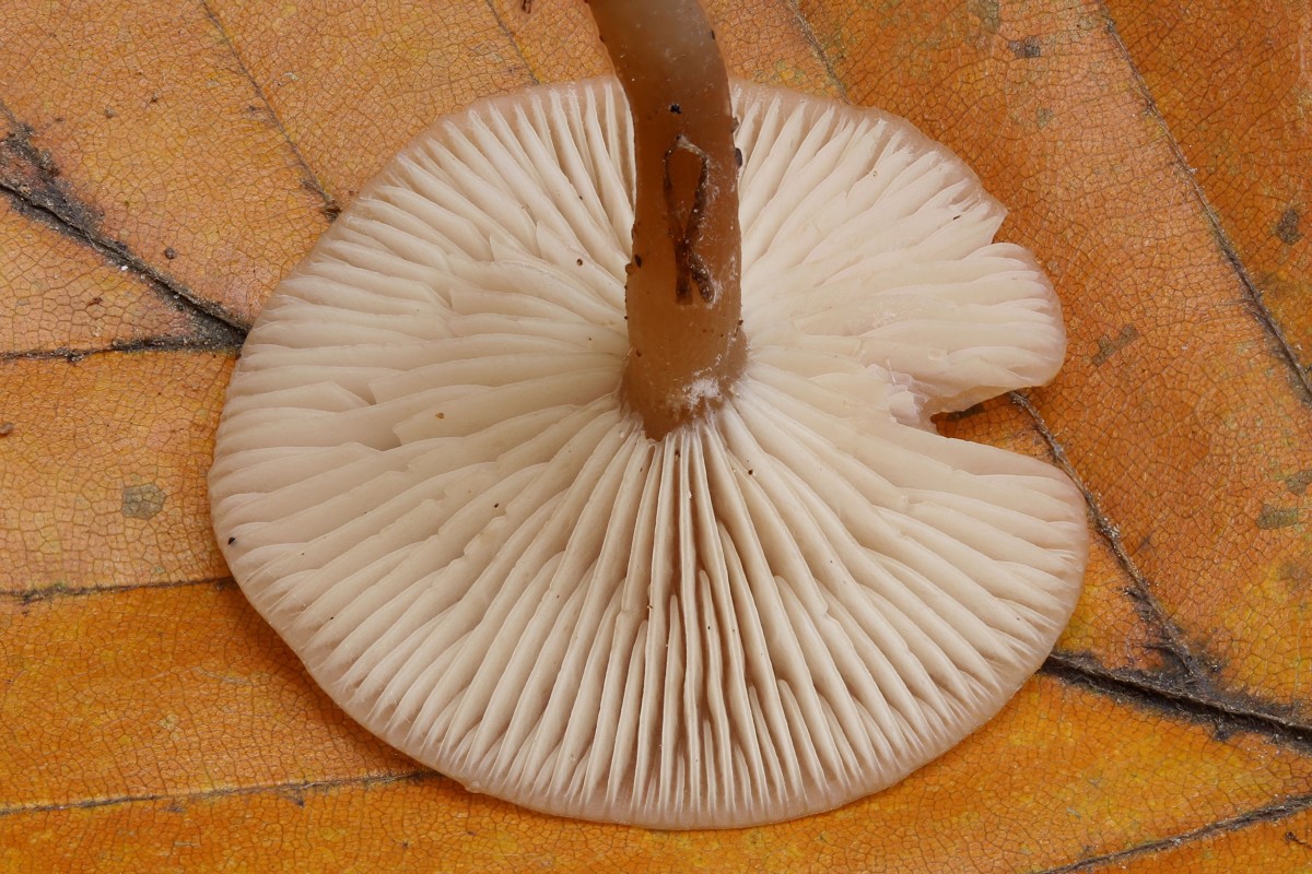 Lamellen: creme, ohne Flecken, Queradern am Grund, viele Y-Gabeln