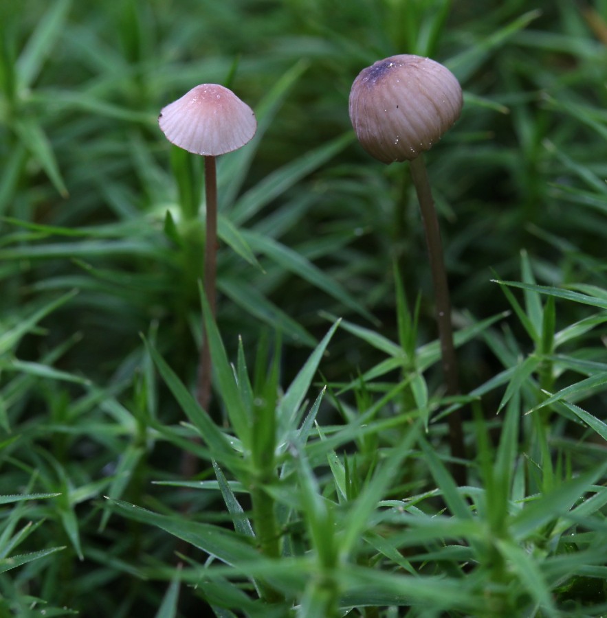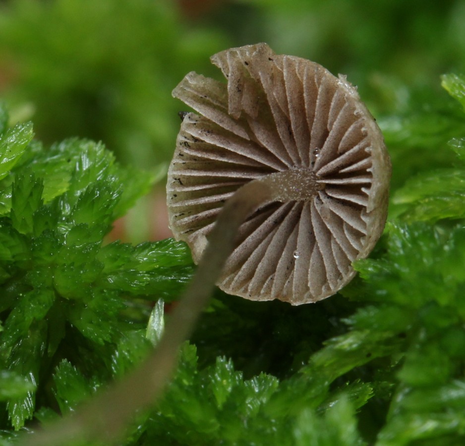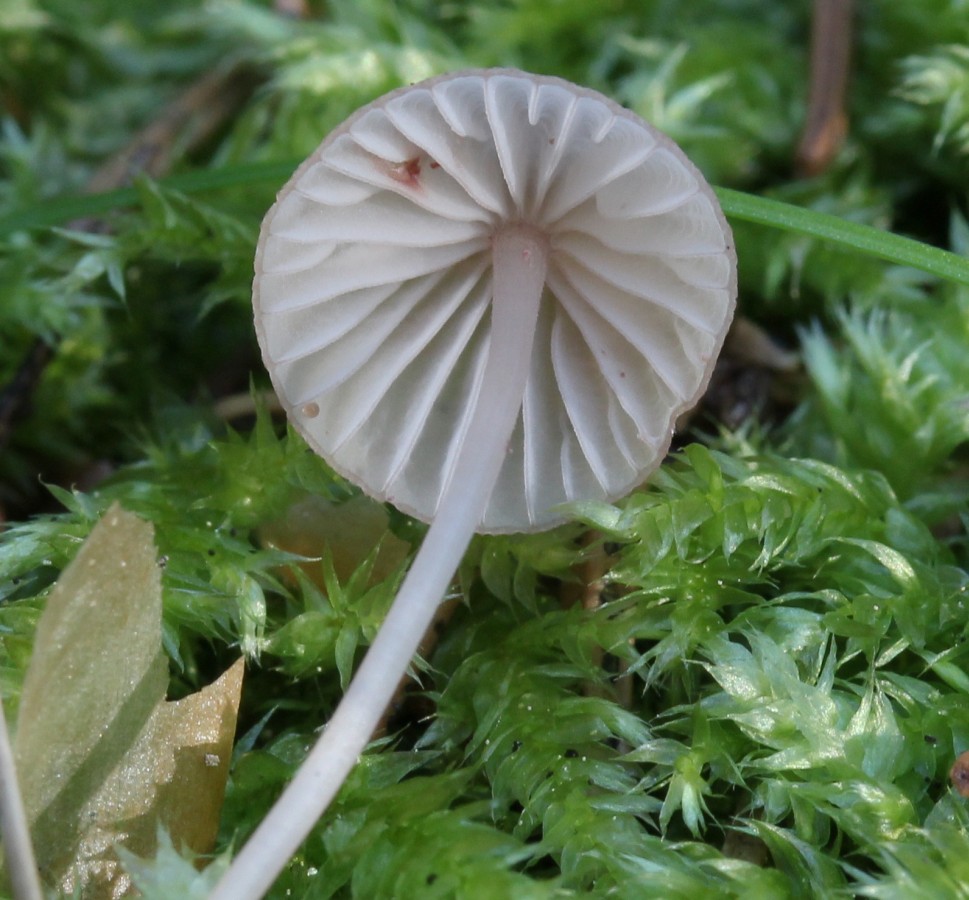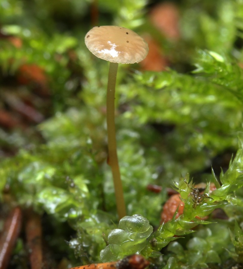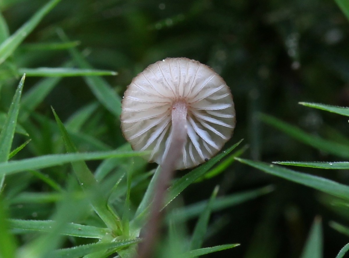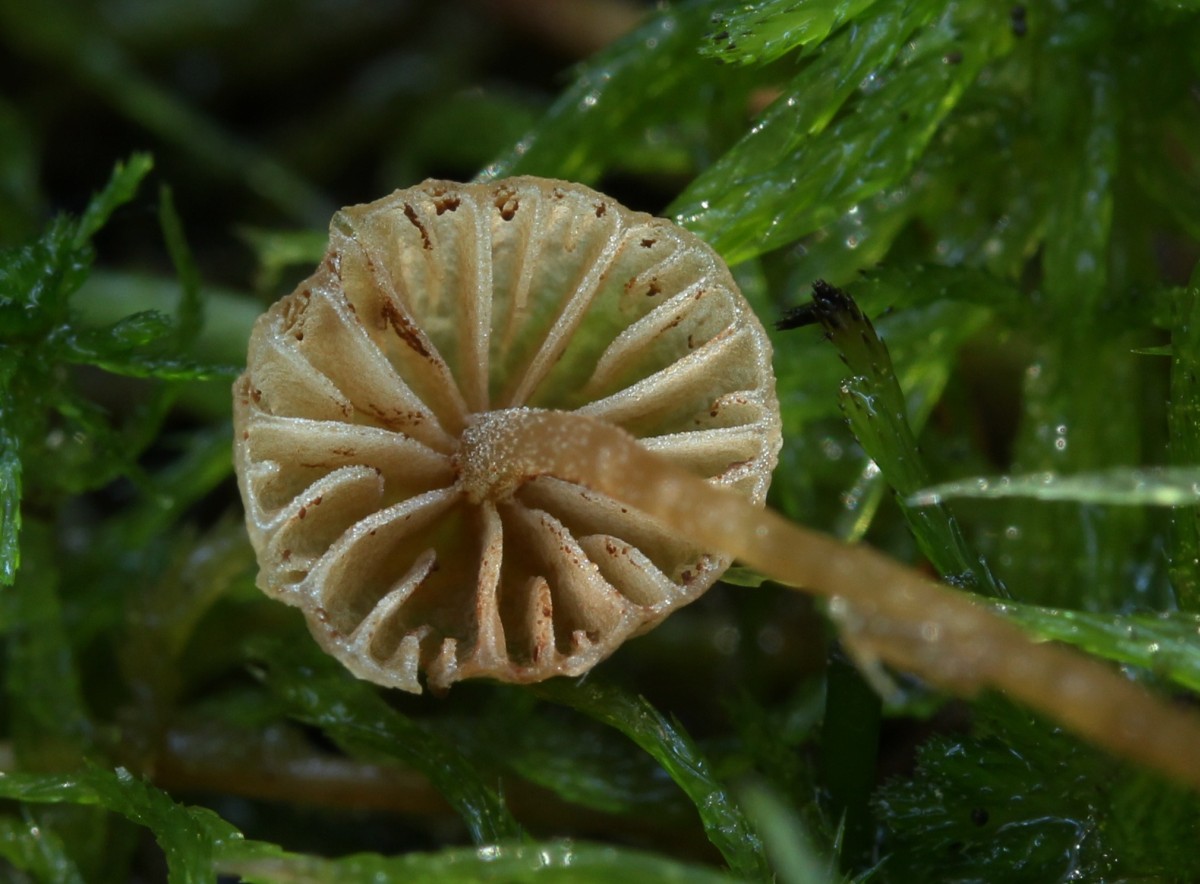 Der erste - ein sehr interessanter - noch noch vollständig bestimmter Scheinhelmling (Hemimycena spec).