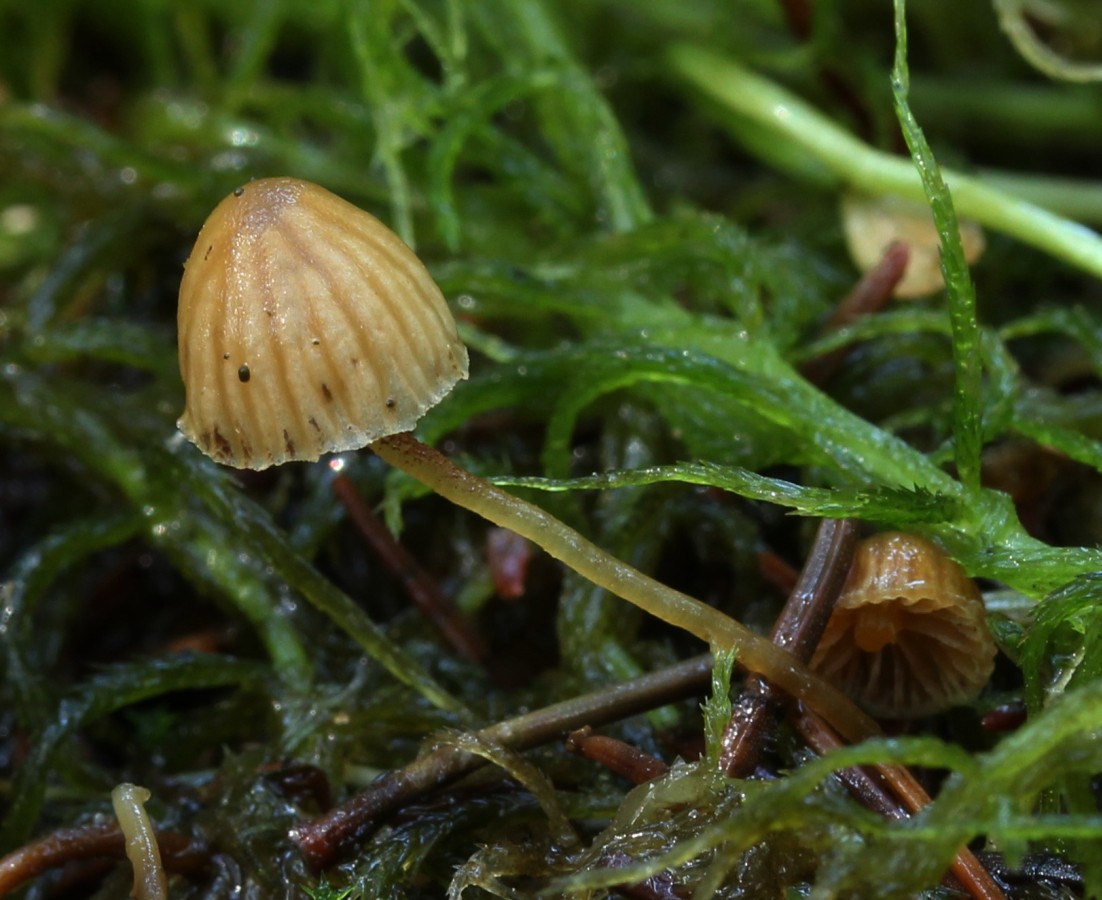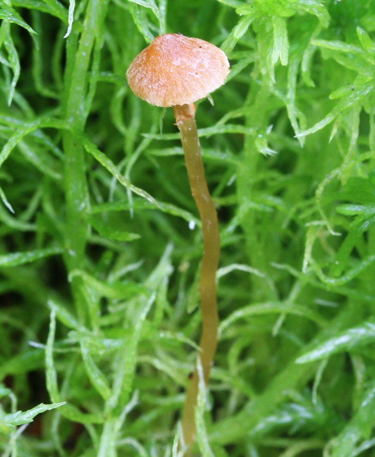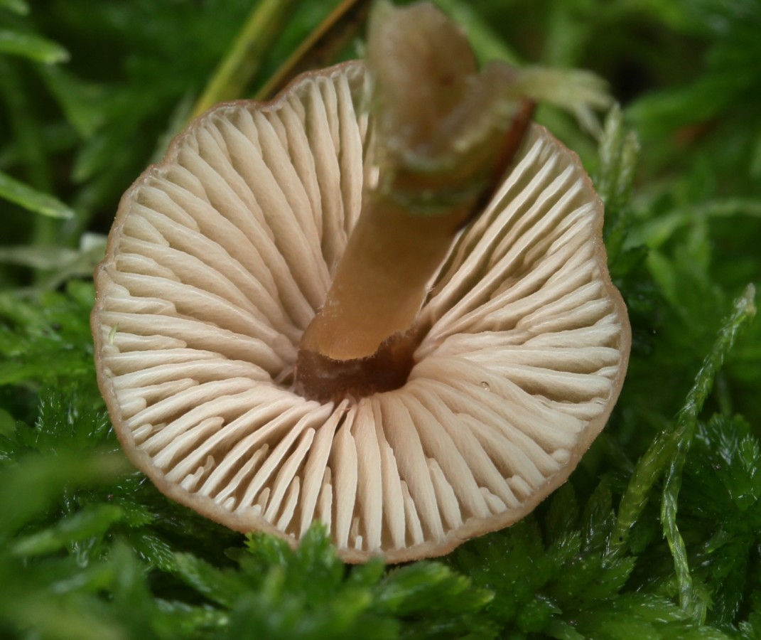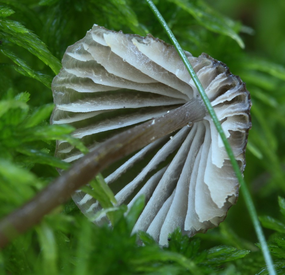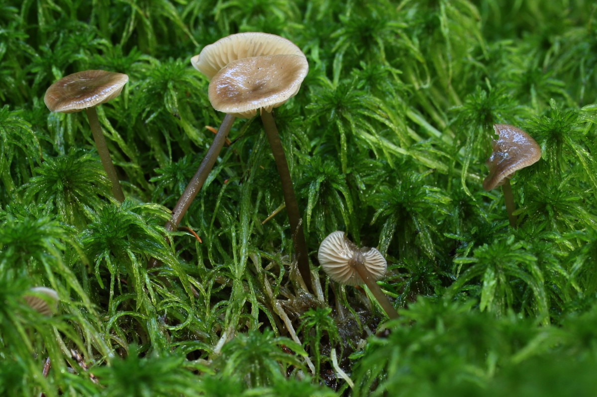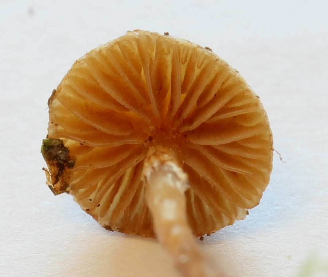 Der erste - ein sehr interessanter - noch noch vollständig bestimmter Scheinhelmling (Hemimycena spec).