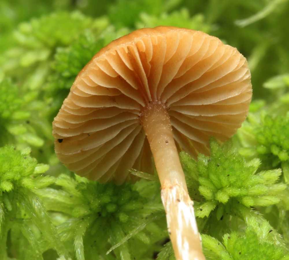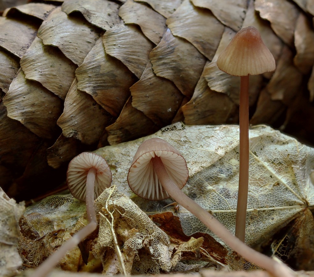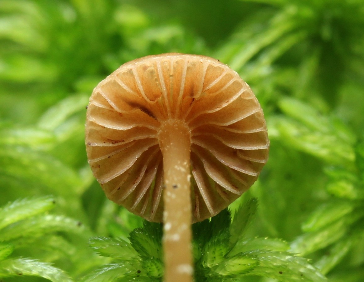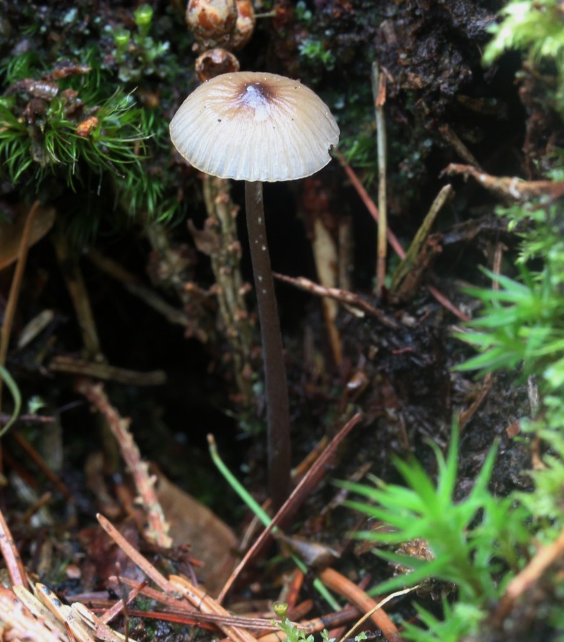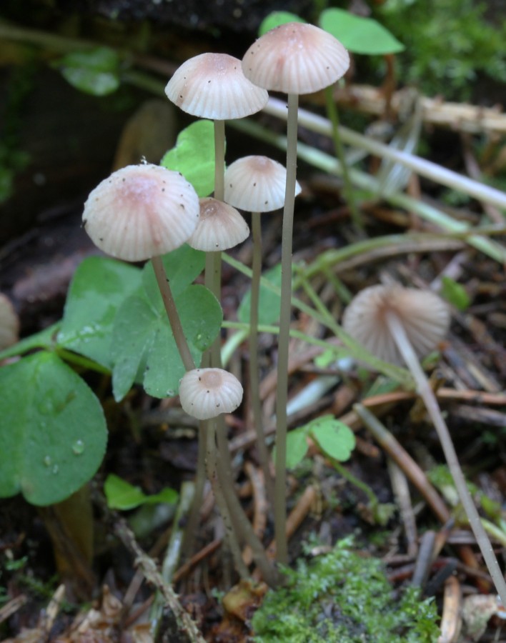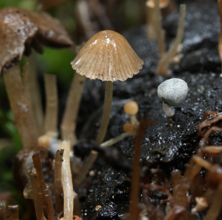 Der erste - ein sehr interessanter - noch noch vollständig bestimmter Scheinhelmling (Hemimycena spec).