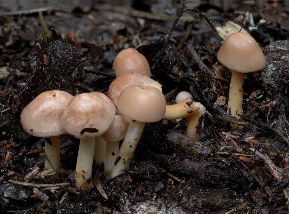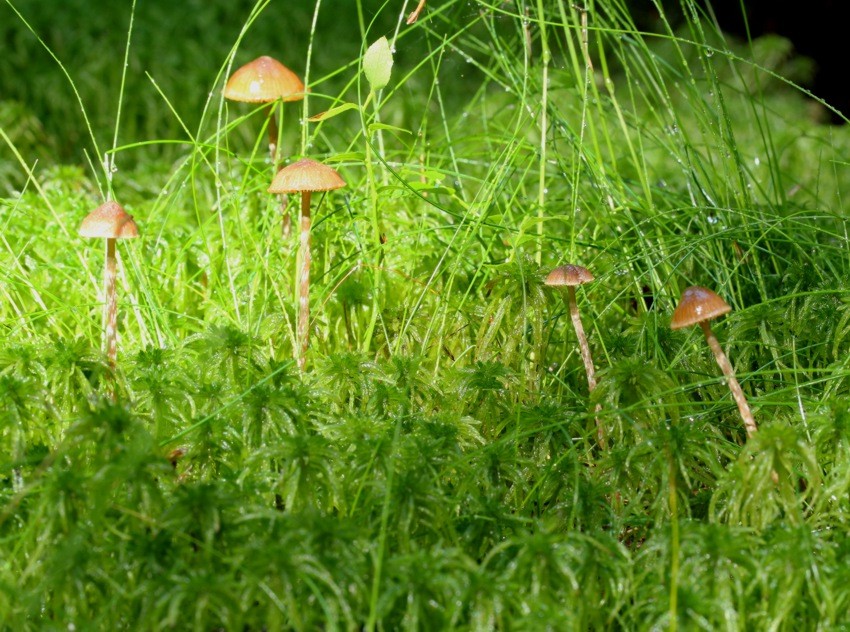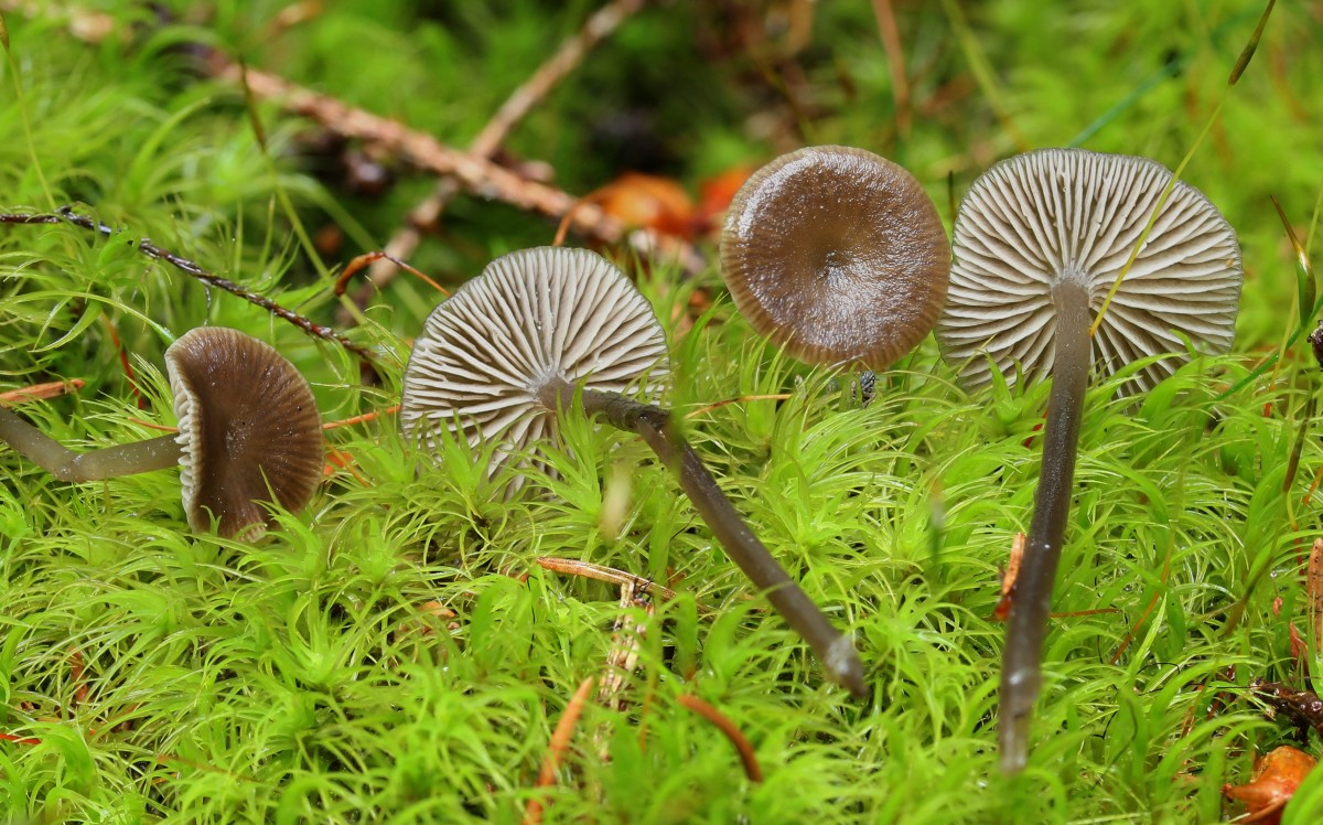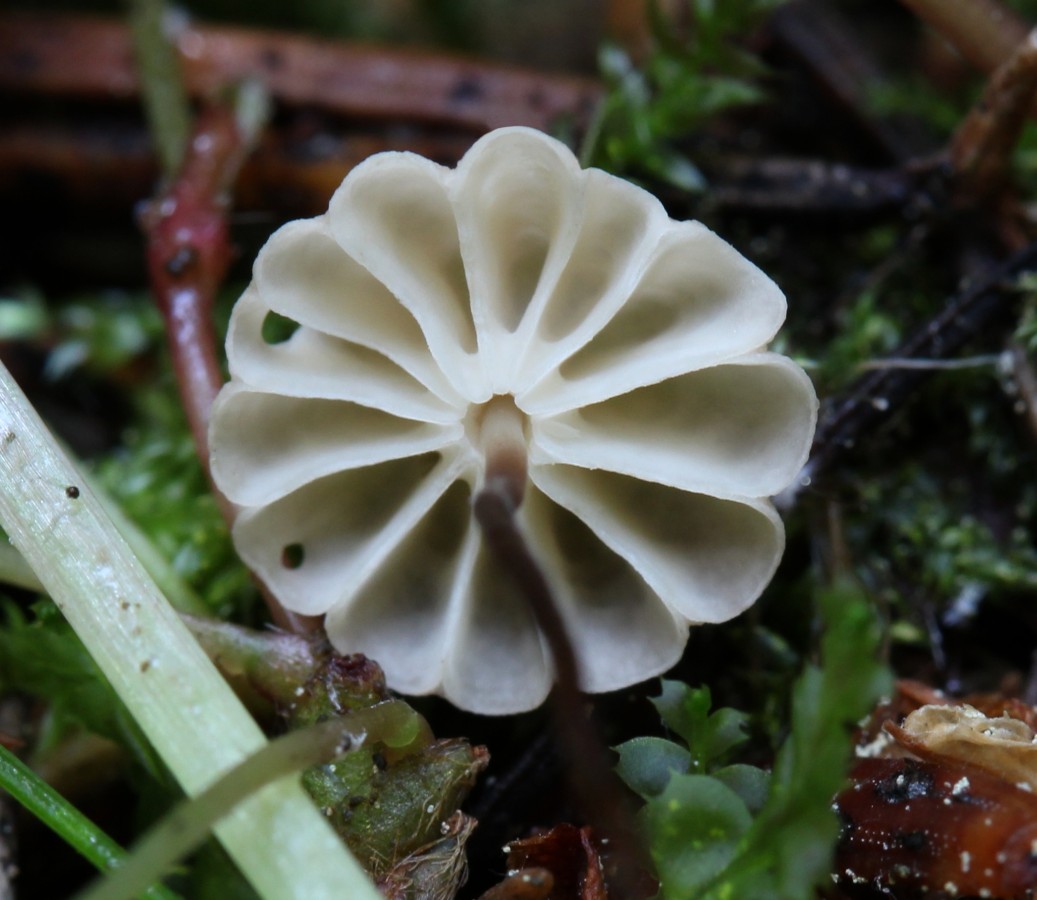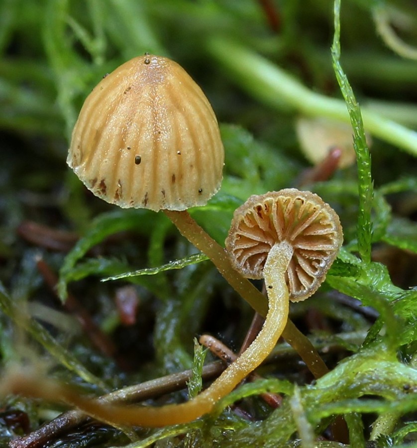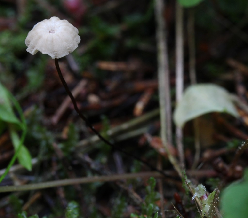Der erste - ein sehr interessanter - noch noch vollständig bestimmter Scheinhelmling (Hemimycena spec).