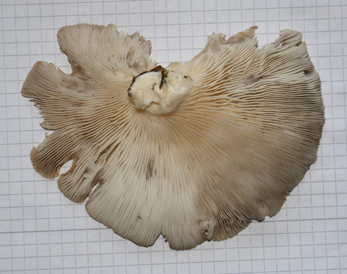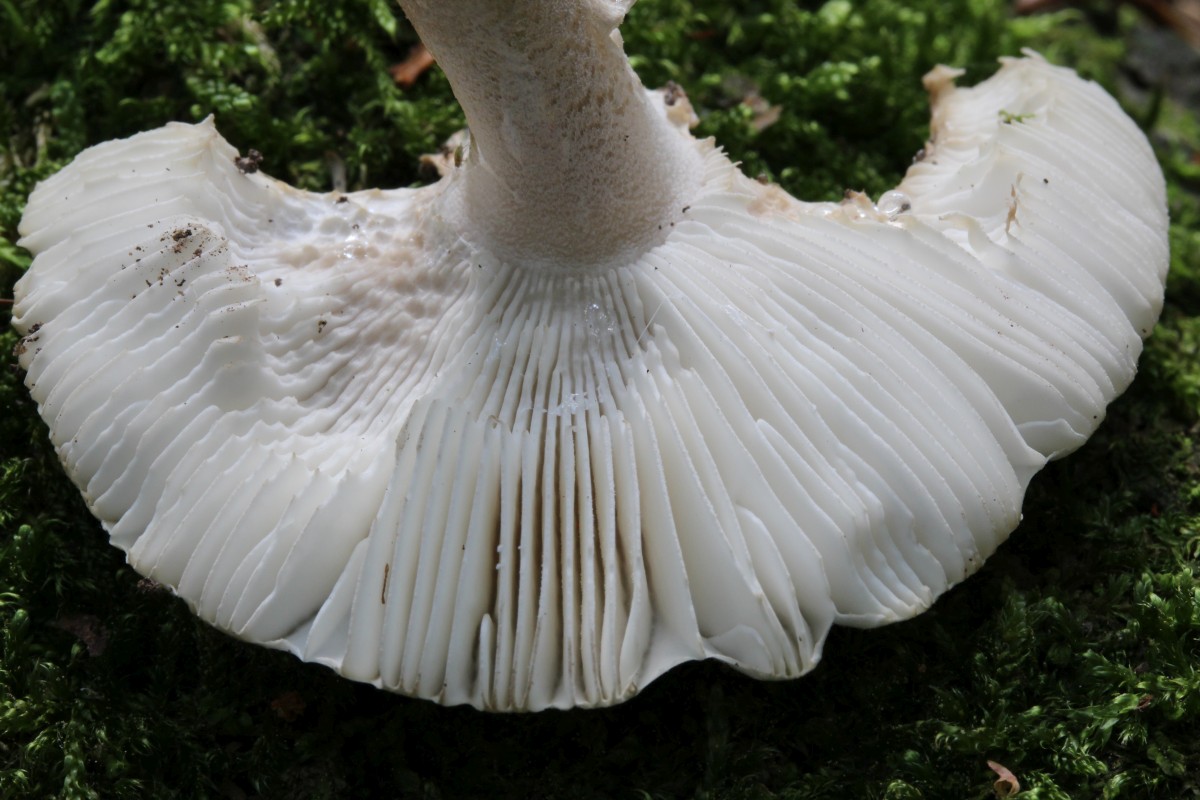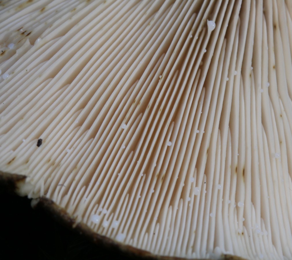 weiß bis schmutzigweiß, mit Zwischenlamellen, ohne Y-Gabeln --> siehe auch Stiel