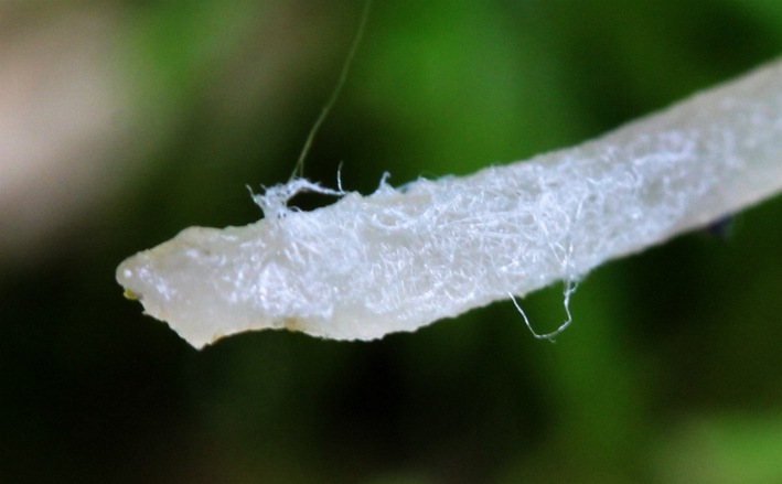 Am letzten Stück des Stiels ist deutlicher grober Filz.