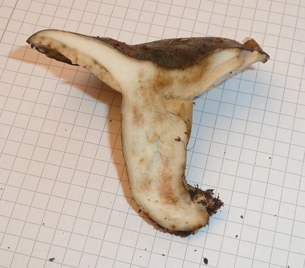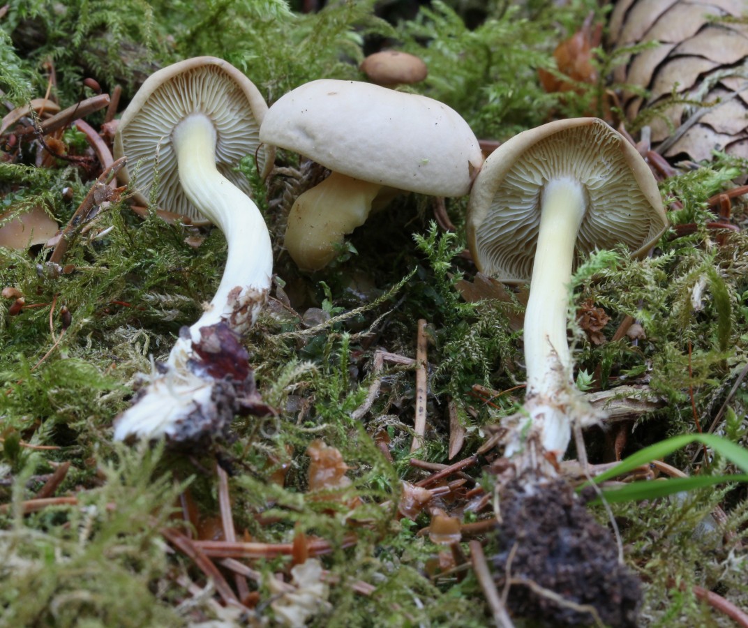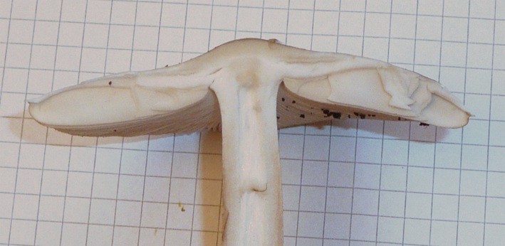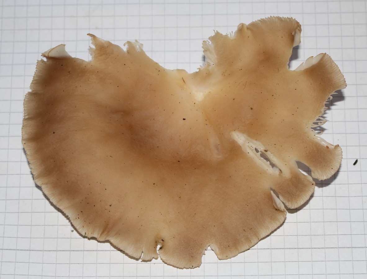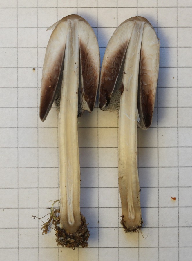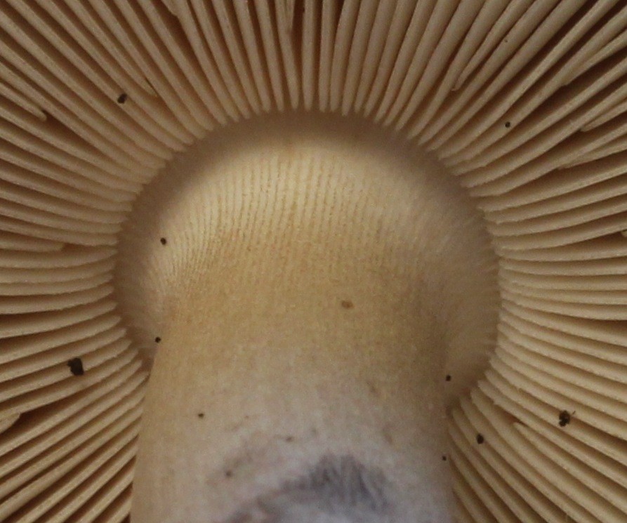 hellbraun, oben bereift, Stielbasis mit Myzelfilz