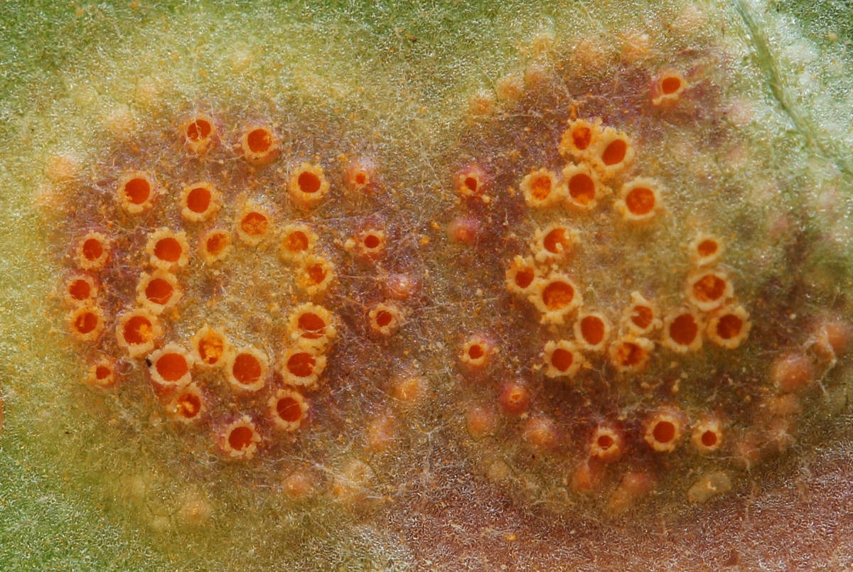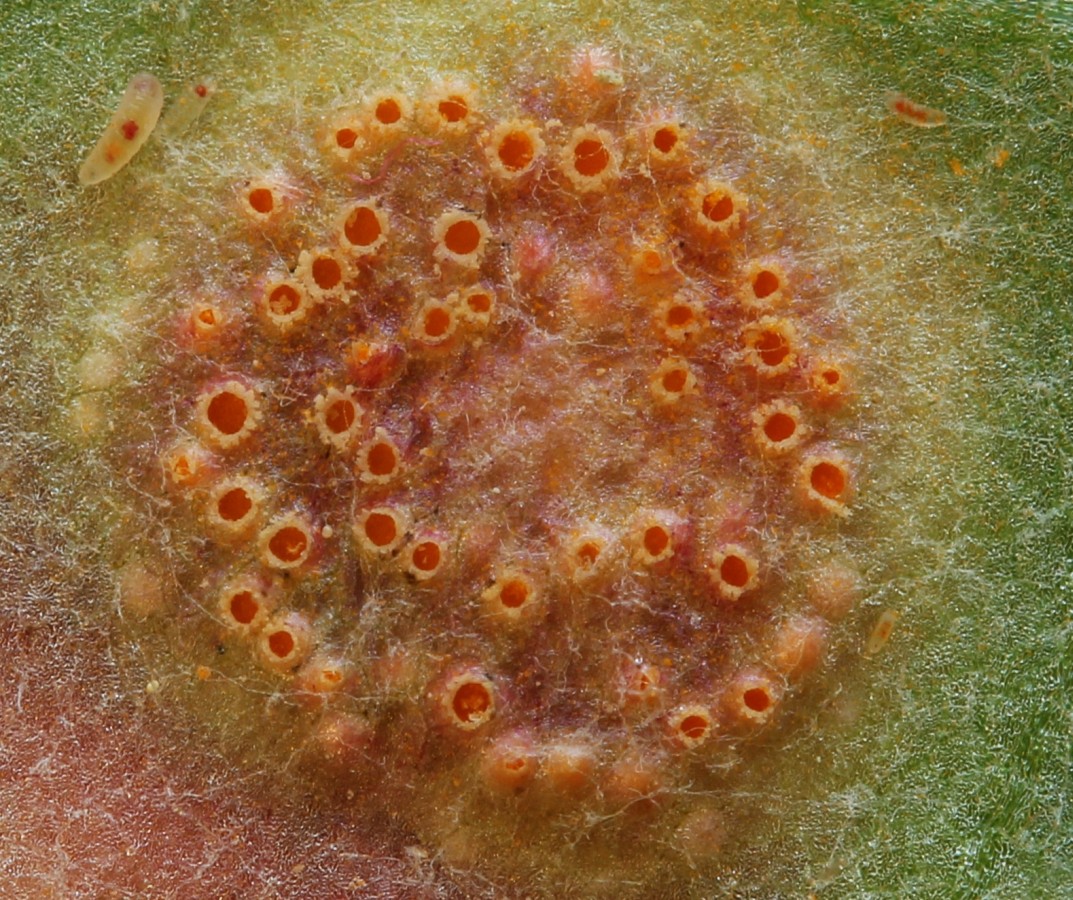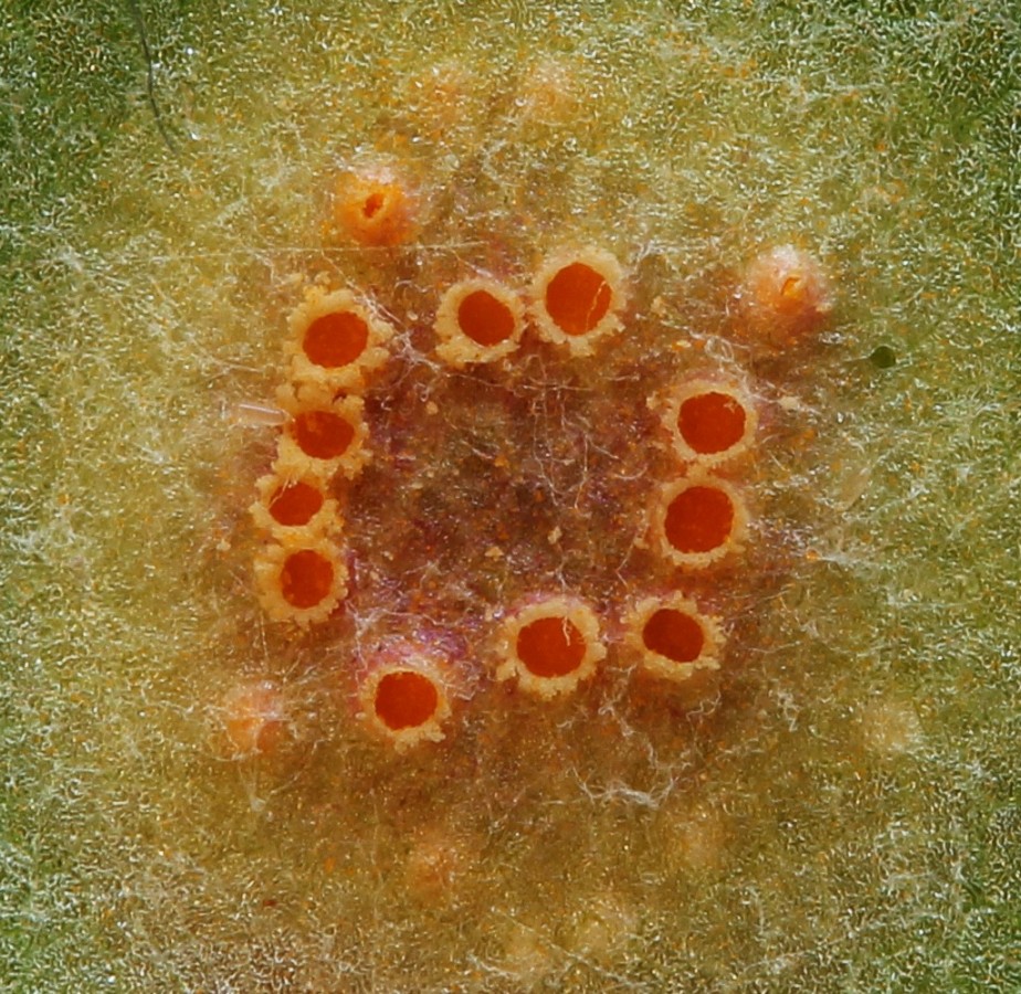 Fruchtkörper teils einzeln, teils übereinander gestapelt