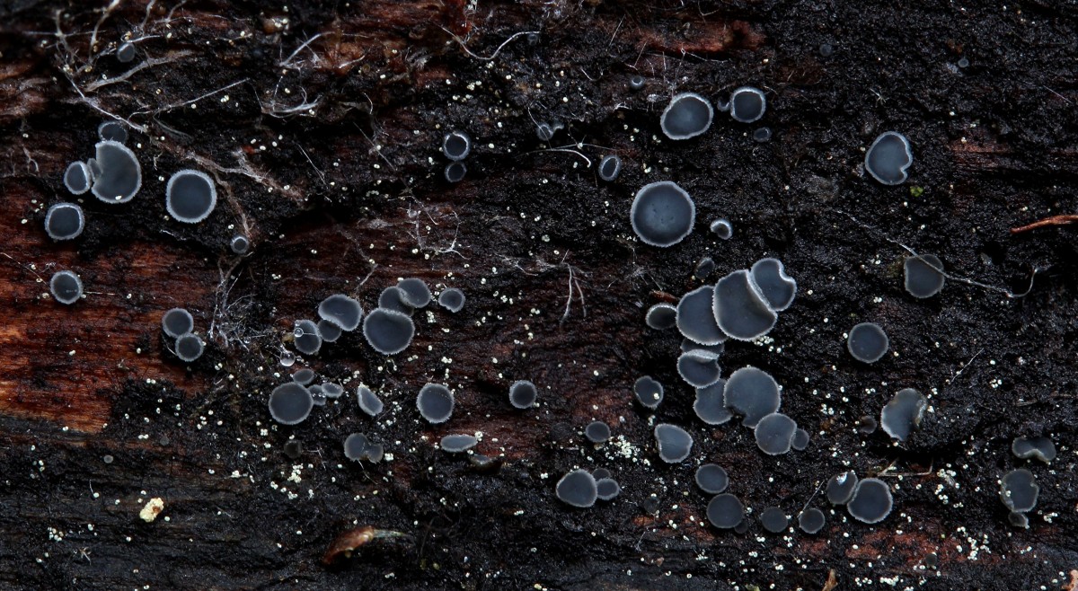 [font="Arial"]An einem Eichen-Ast (Todholz) fand ich dann diese Weichbecherchen (Mollisia spec.) die ich natürlich nicht bestimmen kann.