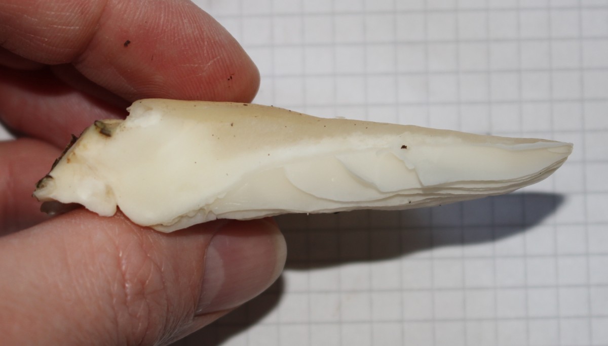 weiß, bei den Jungen könnte man eine angedeutete Ringzone deuten, unten ein paar braune Fasern, innen hohl.