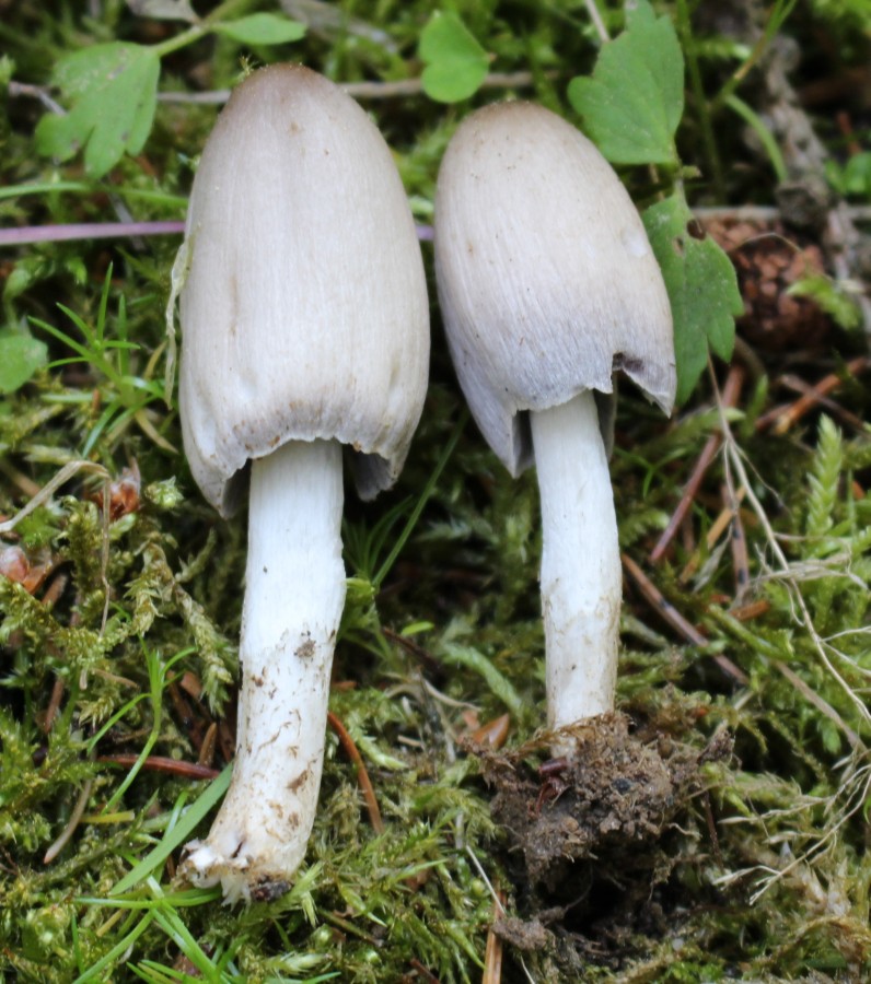 Das ist dann einer von den Nitrathelmlingen, am wahrscheinlichsten der Graue Nitrathelmling (Mycena leptocephala)":